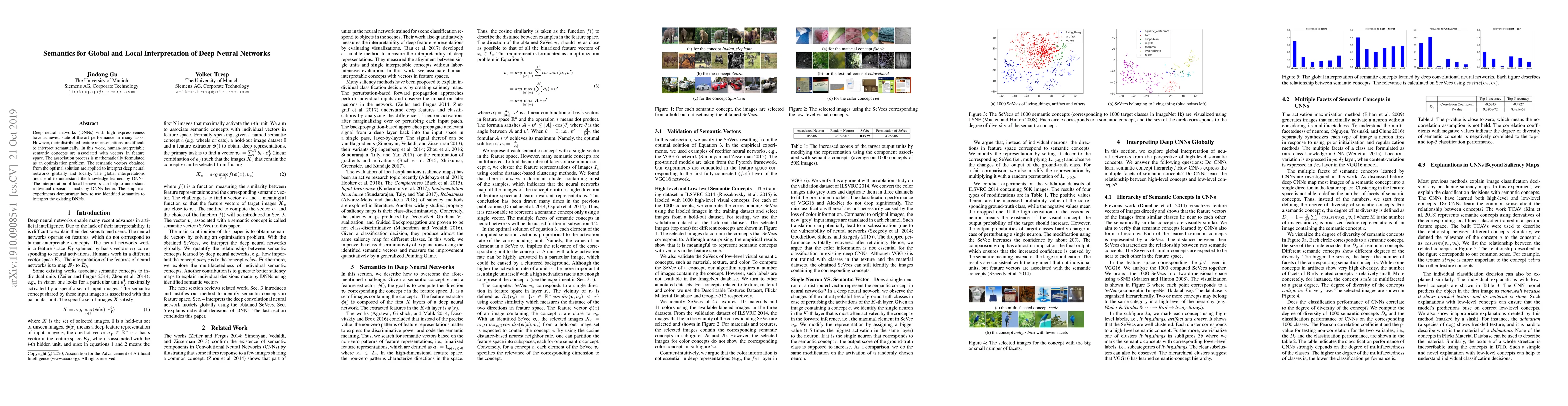 Deep neural networks (DNNs) with high expressiveness have achieved state-of-the-art performance in many tasks. However, their distributed feature representations are difficult to interpret semantically. In this work, human-interpretable semantic concepts are associated with vectors in feature space. The association process is mathematically formulated as an optimization problem. The semantic vectors obtained from the optimal solution are applied to interpret deep neural networks globally and locally. The global interpretations are useful to understand the knowledge learned by DNNs. The interpretation of local behaviors can help to understand individual decisions made by DNNs better. The empirical experiments demonstrate how to use identified semantics to interpret the existing DNNs.
