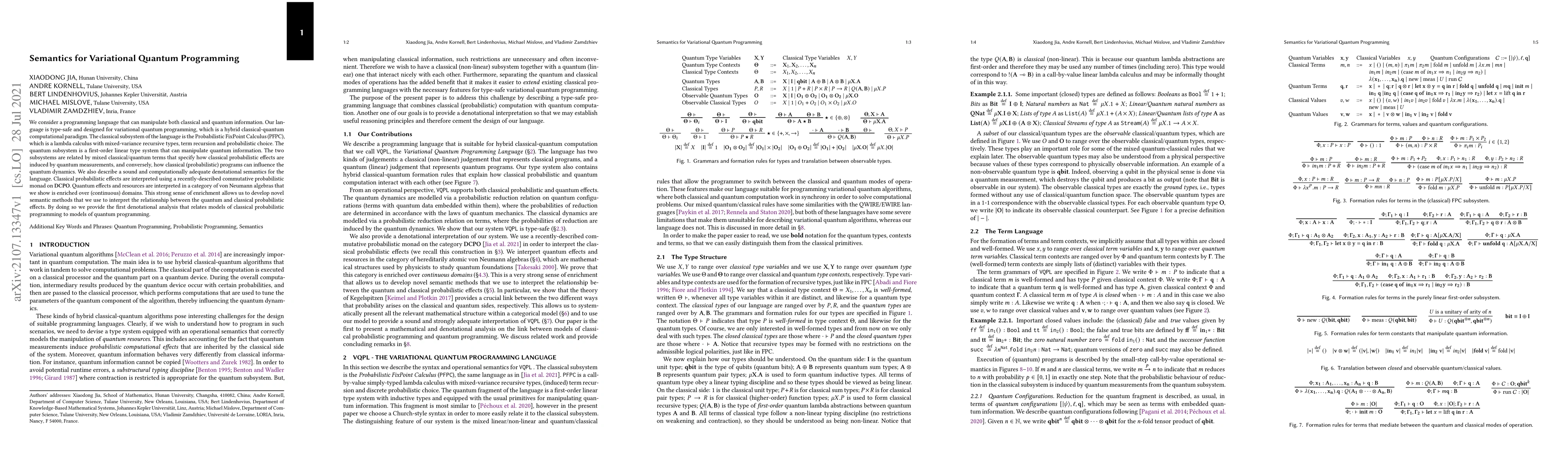 This paper presents a type-safe programming language for variational quantum programming, combining classical and quantum information. It introduces a denotational semantics linking the Probabilistic FixPoint Calculus for classical effects and a linear type system for quantum effects, providing a novel interpretation of their interaction.