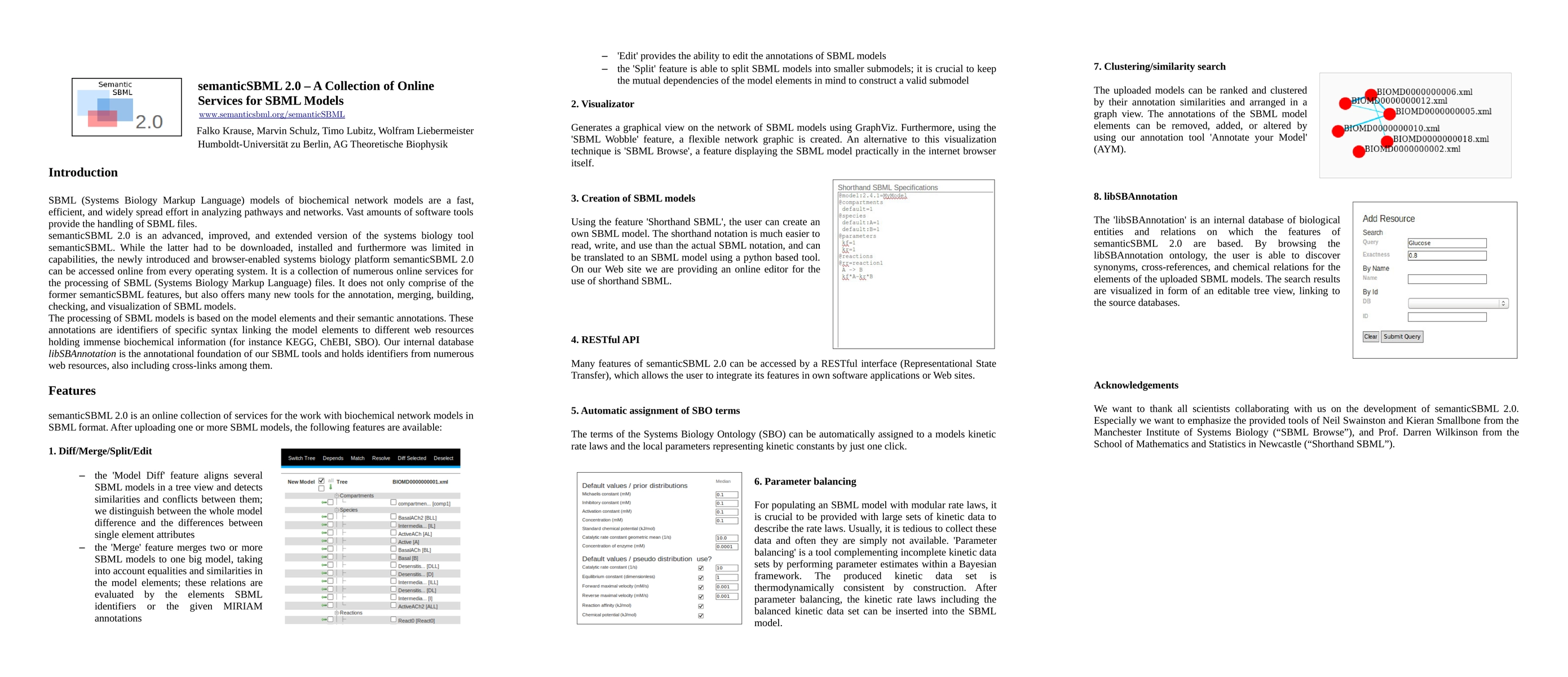 semanticSBML 2.0 is an online collection of services for the work with biochemical network models in SBML format.