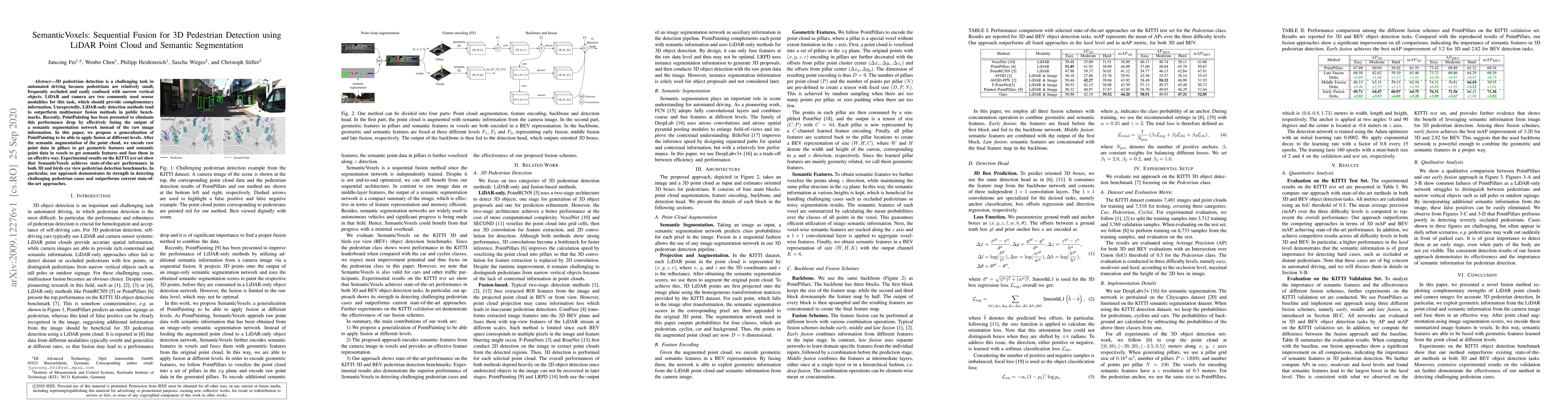 This paper proposes a new approach called SemanticVoxels that combines LiDAR point cloud data with semantic segmentation to achieve state-of-the-art 3D pedestrian detection performance. It outperforms current methods in detecting challenging cases and demonstrates its strength in both 3D and bird's eye view benchmarks.
