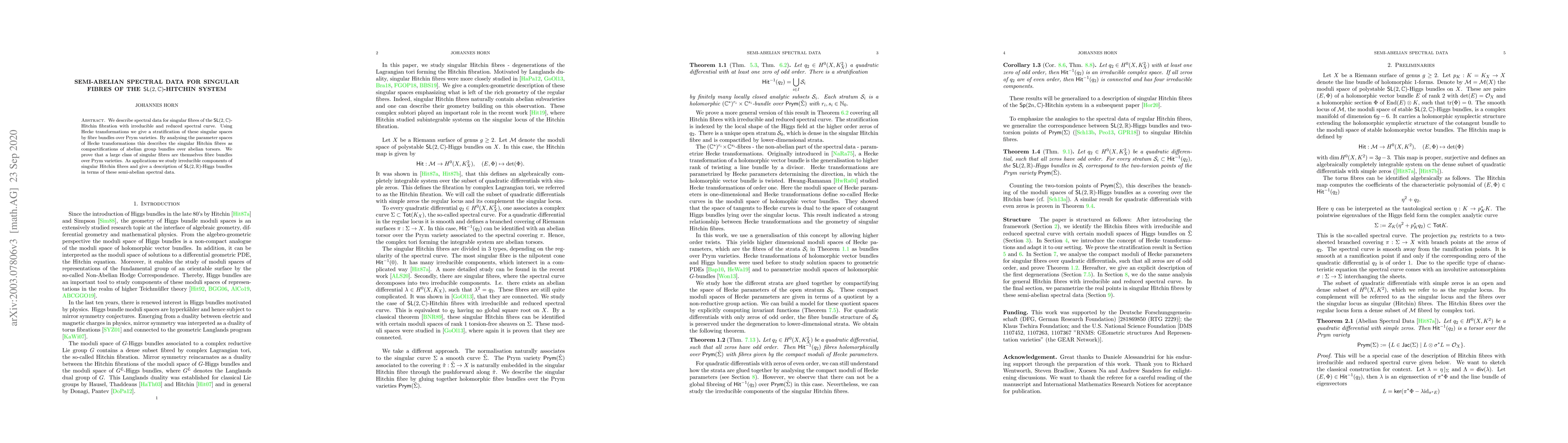 This paper explores the spectral data of singular fibres in the $\mathsf{SL}(2,\mathbb{C})$-Hitchin fibration, employing Hecke transformations to stratify these fibres as bundles over Prym varieties. It concludes that many singular fibres are themselves fibre bundles over Prym varieties, with applications to $\mathsf{SL}(2,\mathbb{R})$-Higgs bundles.