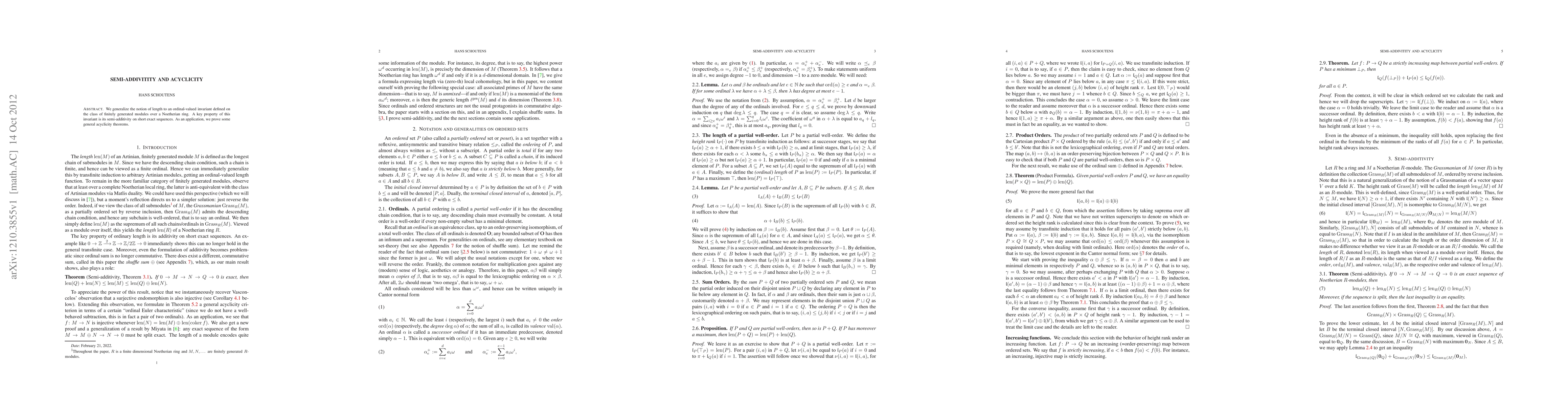 This paper introduces an ordinal-valued invariant for finitely generated modules over Noetherian rings, highlighting its semi-additivity on short exact sequences, and uses this property to establish new acyclicity theorems.