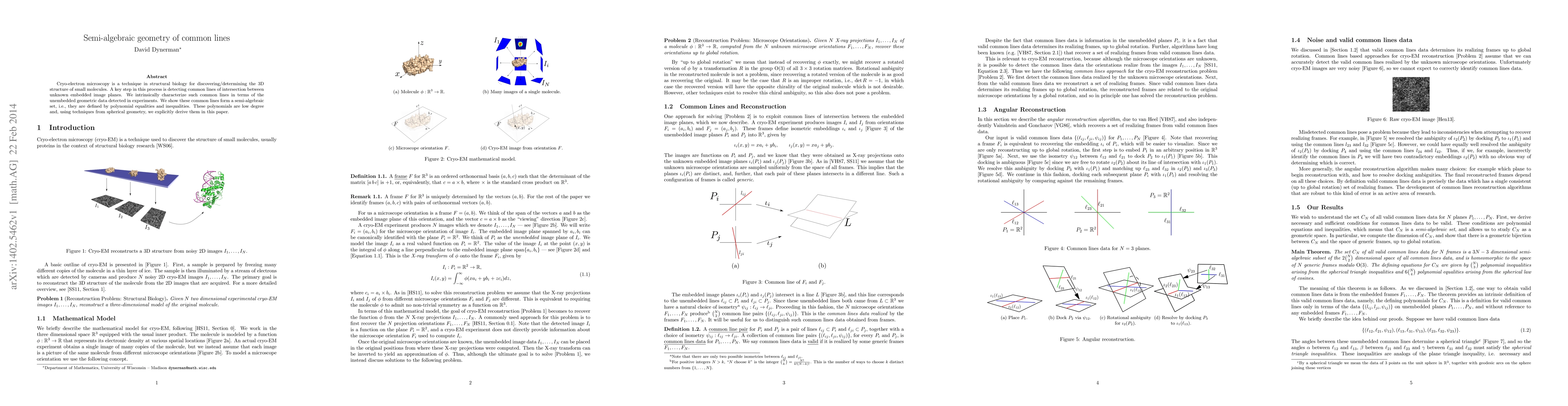 Cryo-electron microscopy is a technique in structural biology for discovering/determining the 3D structure of small molecules. A key step in this process is detecting common lines of intersection between unknown embedded image planes. We intrinsically characterize such common lines in terms of the unembedded geometric data detected in experiments. We show these common lines form a semi-algebraic set, i.e., they are defined by polynomial equalities and inequalities. These polynomials are low degree and, using techniques from spherical geometry, we explicitly derive them in this paper.
