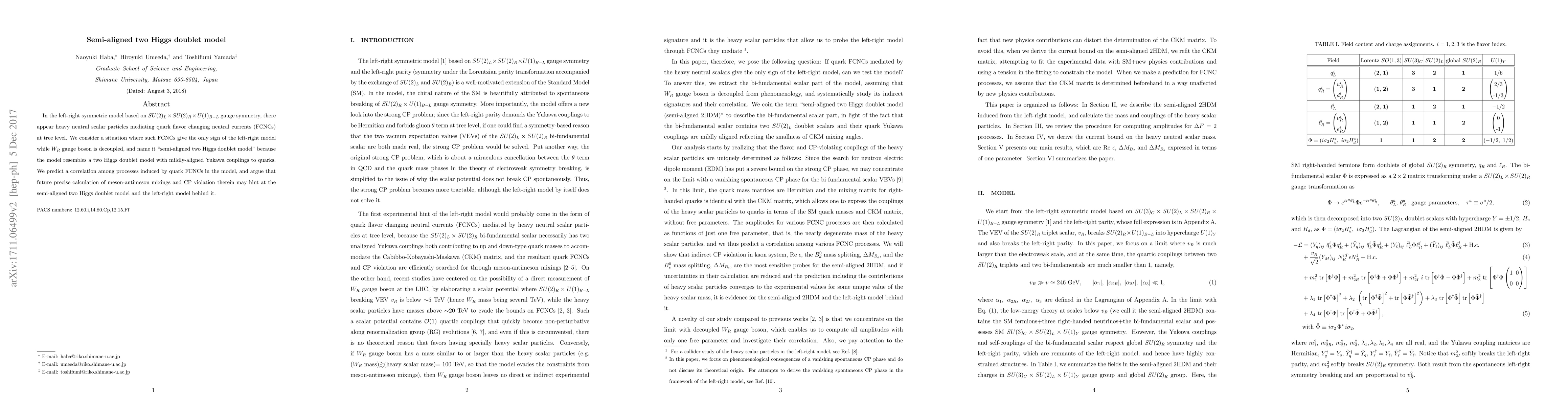 The paper introduces and analyzes the semi-aligned two Higgs doublet model, a specific realization of a left-right symmetric model, focusing on its phenomenological implications for ∆F=2 processes and providing a framework for future experimental tests.