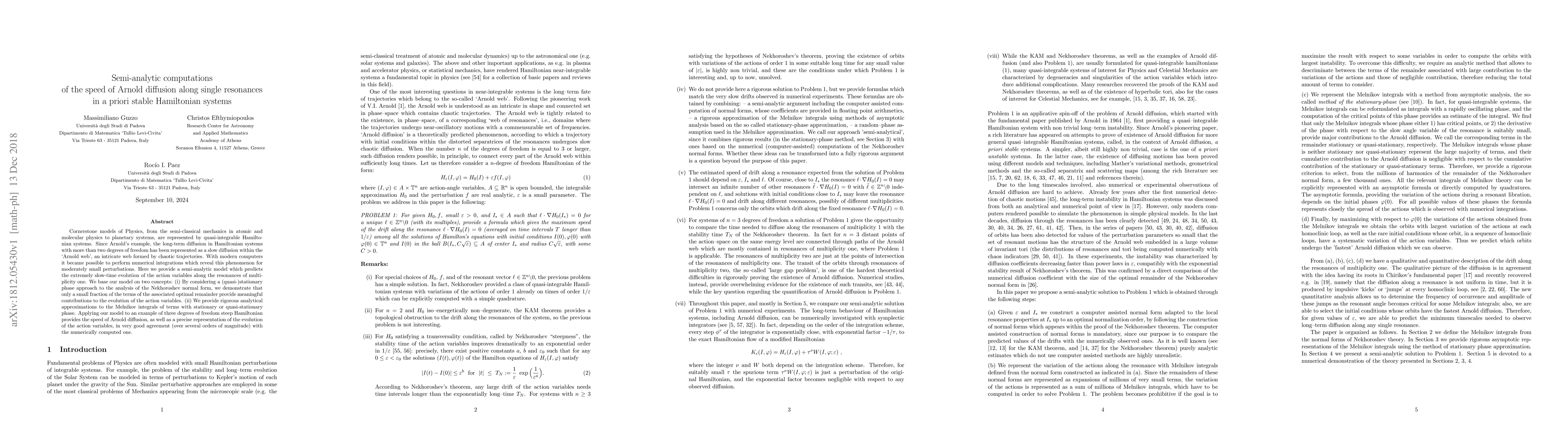 Cornerstone models of Physics, from the semi-classical mechanics in atomic and molecular physics to planetary systems, are represented by quasi-integrable Hamiltonian systems. Since Arnold's example, the long-term diffusion in Hamiltonian systems with more than two degrees of freedom has been represented as a slow diffusion within the `Arnold web', an intricate web formed by chaotic trajectories. With modern computers it became possible to perform numerical integrations which reveal this phenomenon for moderately small perturbations. Here we provide a semi-analytic model which predicts the extremely slow-time evolution of the action variables along the resonances of multiplicity one. We base our model on two concepts: (i) By considering a (quasi-)stationary phase approach to the analysis of the Nekhoroshev normal form, we demonstrate that only a small fraction of the terms of the associated optimal remainder provide meaningful contributions to the evolution of the action variables. (ii) We provide rigorous analytical approximations to the Melnikov integrals of terms with stationary or quasi-stationary phase. Applying our model to an example of three degrees of freedom steep Hamiltonian provides the speed of Arnold diffusion, as well as a precise representation of the evolution of the action variables, in very good agreement (over several orders of magnitude) with the numerically computed one.
