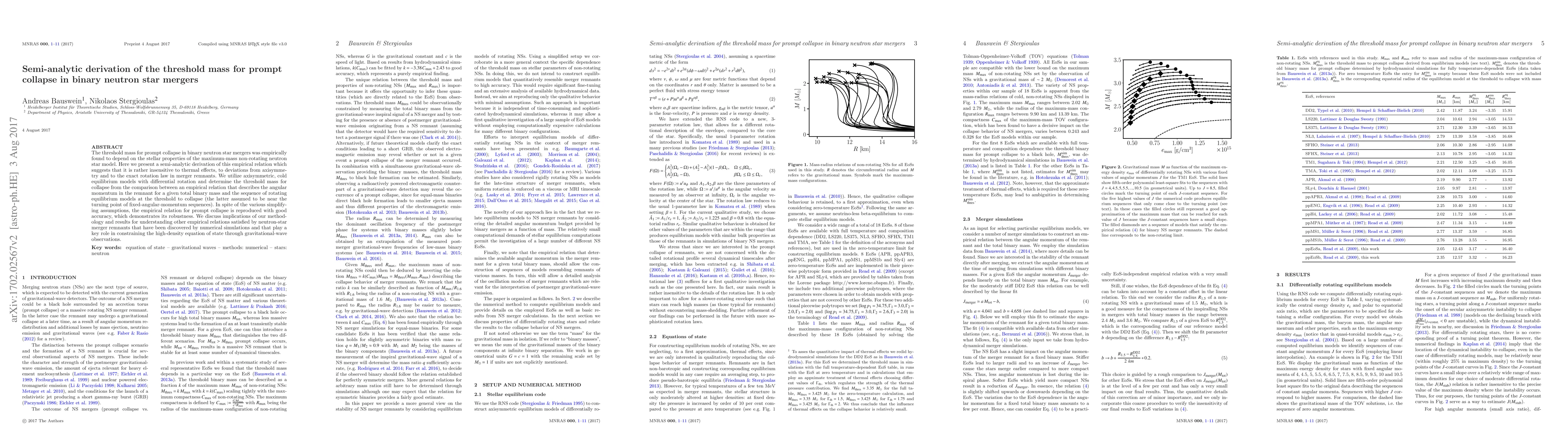 This paper provides a semi-analytic derivation of the threshold mass for prompt collapse in binary neutron star mergers, showing that the empirical relation is robust and largely unaffected by thermal effects and rotation laws. The methodology uses cold equilibrium models to accurately reproduce the empirical relation, highlighting its implications for understanding neutron star merger dynamics and high-density equations of state.