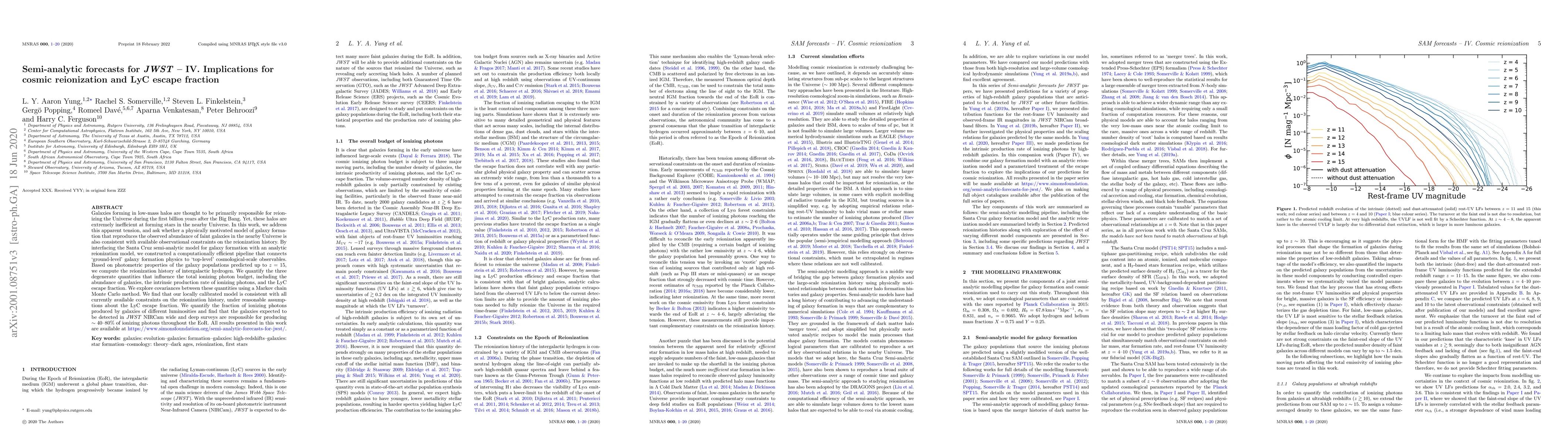 This paper uses a semi-analytic model to investigate the role of low-mass galaxies in cosmic reionization and the escape fraction of Lyman continuum photons. The study finds that faint galaxies detected by JWST are responsible for 40-80% of the ionizing photons during the Epoch of Reionization, consistent with observational constraints.