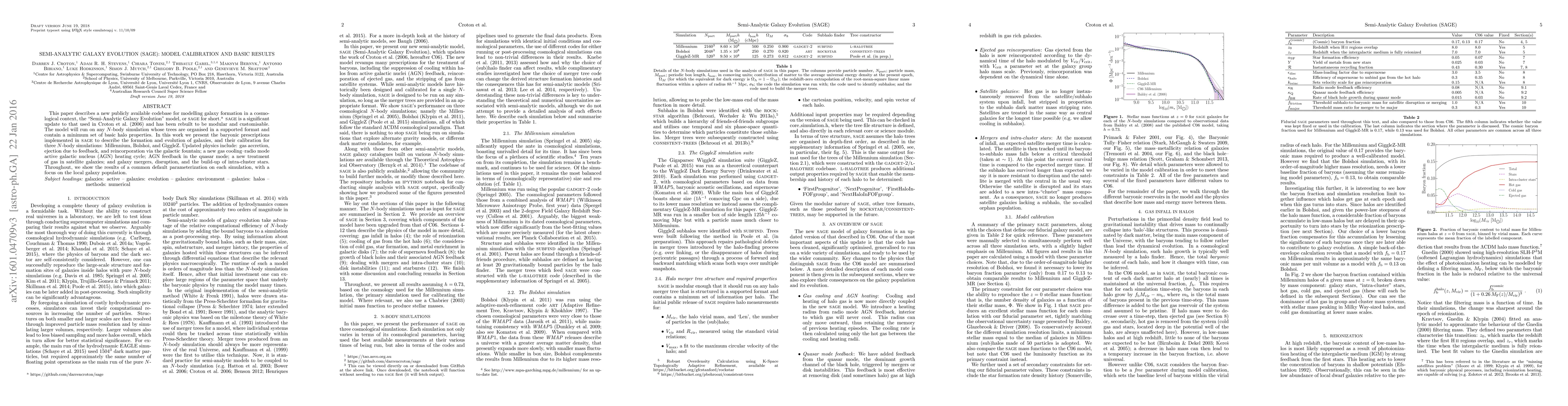 This paper introduces the updated "Semi-Analytic Galaxy Evolution" (SAGE) model, a modular code for galaxy formation, and details its calibration using three N-body simulations. The model incorporates new physics for gas dynamics, AGN feedback, and galaxy mergers, showcasing results focused on the local galaxy population.