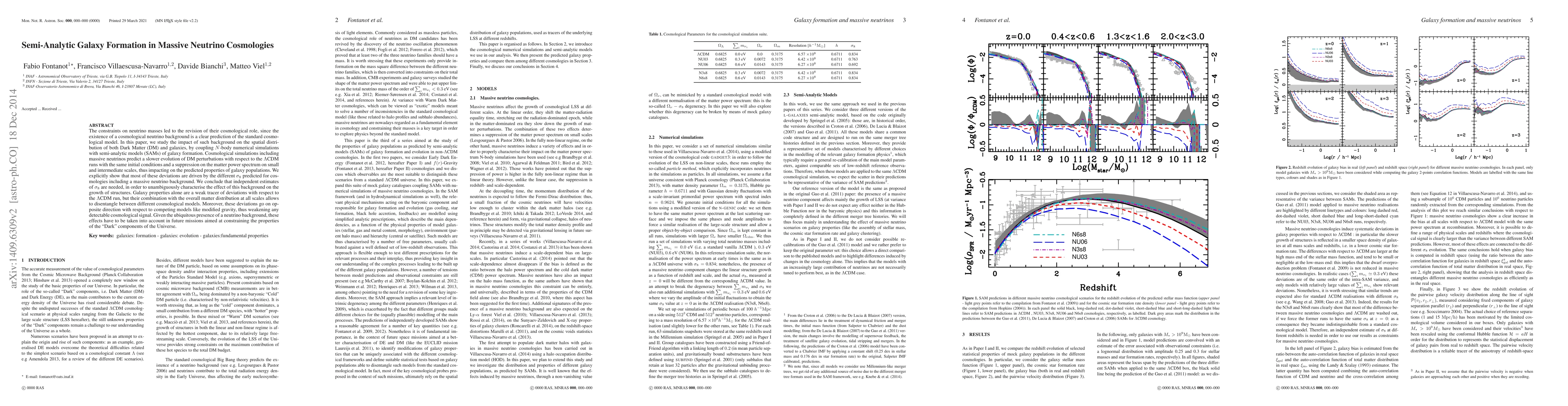 The constraints on neutrino masses led to the revision of their cosmological role, since the existence of a cosmological neutrino background is a clear prediction of the standard cosmological model. In this paper, we study the impact of such background on the spatial distribution of both Dark Matter (DM) and galaxies, by coupling $N$-body numerical simulations with semi-analytic models (SAMs) of galaxy formation. Cosmological simulations including massive neutrinos predict a slower evolution of DM perturbations with respect to the $\Lambda$CDM runs with the same initial conditions and a suppression on the matter power spectrum on small and intermediate scales, thus impacting on the predicted properties of galaxy populations. We explicitly show that most of these deviations are driven by the different $\sigma_8$ predicted for cosmologies including a massive neutrino background. We conclude that independent estimates of $\sigma_8$ are needed, in order to unambiguously characterise the effect of this background on the growth of structures. Galaxy properties alone are a weak tracer of deviations with respect to the $\Lambda$CDM run, but their combination with the overall matter distribution at all scales allows to disentangle between different cosmological models. Moreover, these deviations go on opposite direction with respect to competing models like modified gravity, thus weakening any detectable cosmological signal. Given the ubiquitous presence of a neutrino background, these effects have to be taken into account in future missions aimed at constraining the properties of the "Dark" components of the Universe.