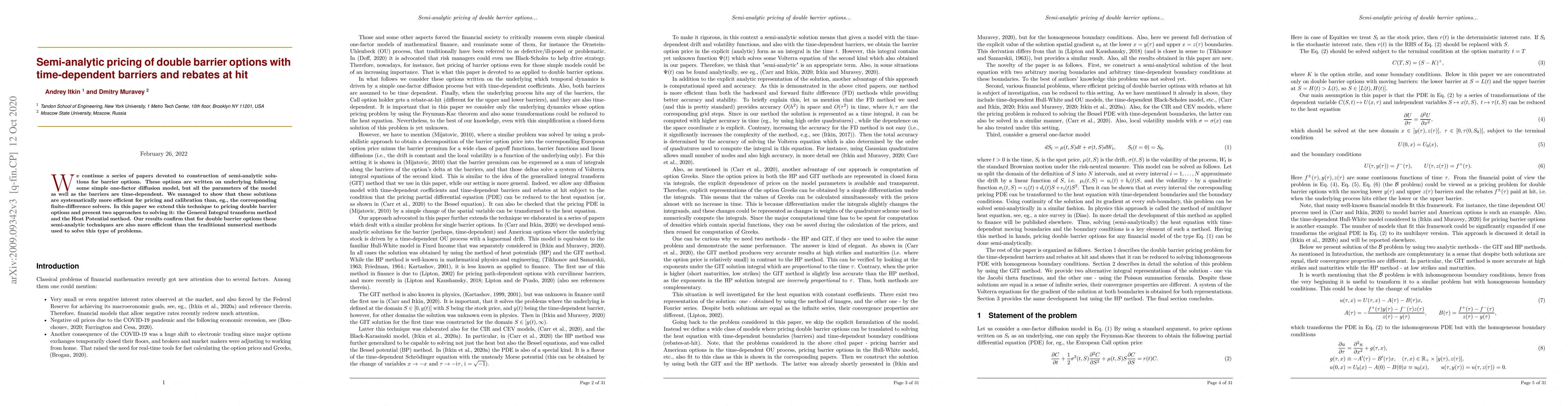 This paper develops semi-analytic methods for pricing double barrier options with time-dependent barriers and rebates. It demonstrates that these methods, specifically the General Integral transform method and the Heat Potential method, are more efficient than traditional numerical solvers.