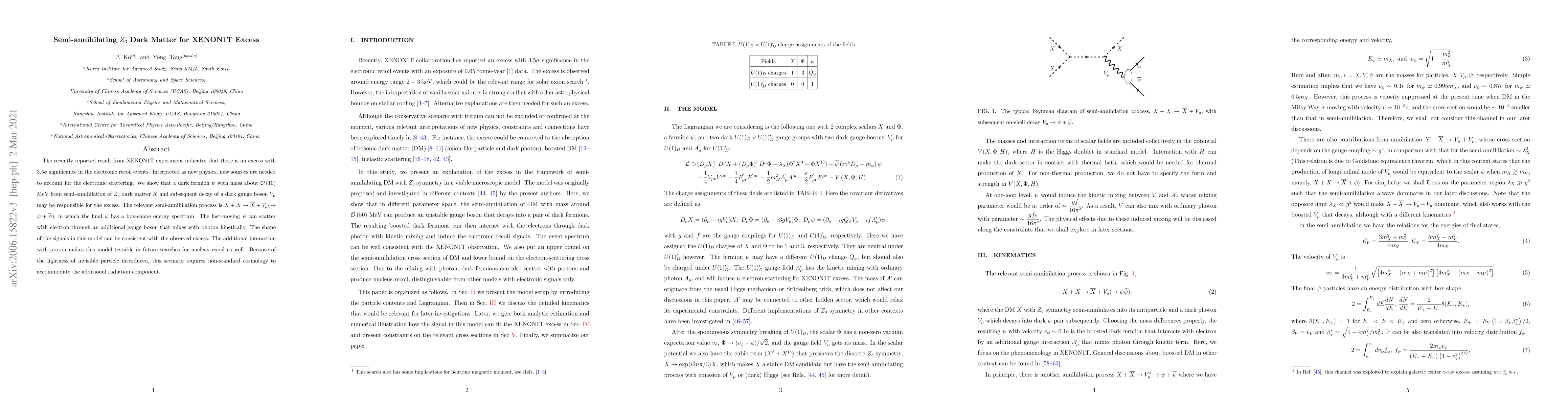 A new dark matter model suggests that an excess of electronic recoils in XENON1T data could be caused by a particle called $eta$, which is created through the semi-annihilation of $Z_3$ dark matter. The model's predictions match the observed excess, and it also predicts additional interactions with protons that could be tested in future searches.