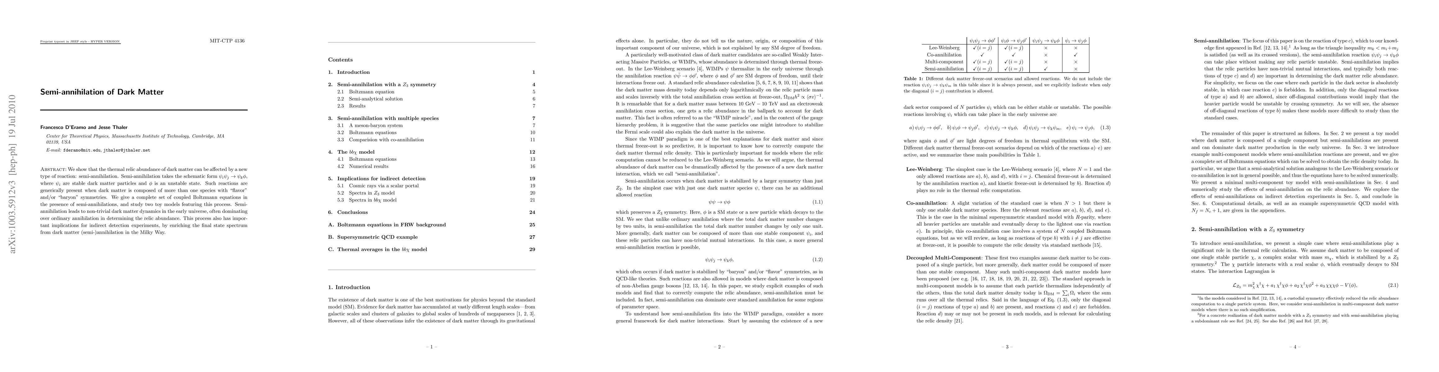 This paper explores how semi-annihilation reactions can alter the thermal relic abundance of dark matter, proposing that such processes dominate over ordinary annihilation in determining the relic abundance. It provides coupled Boltzmann equations and examines two toy models, highlighting implications for indirect detection experiments.