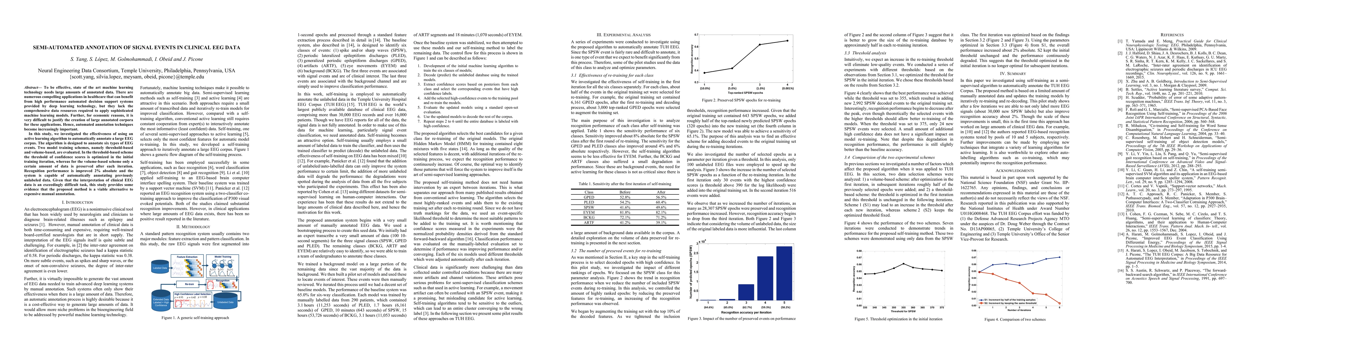 This study explores the use of an active learning algorithm to semi-automate the annotation of six types of signal events in clinical EEG data, evaluating two training schemes. The method improves recognition performance by 2% and offers a cost-effective alternative to manual annotation.