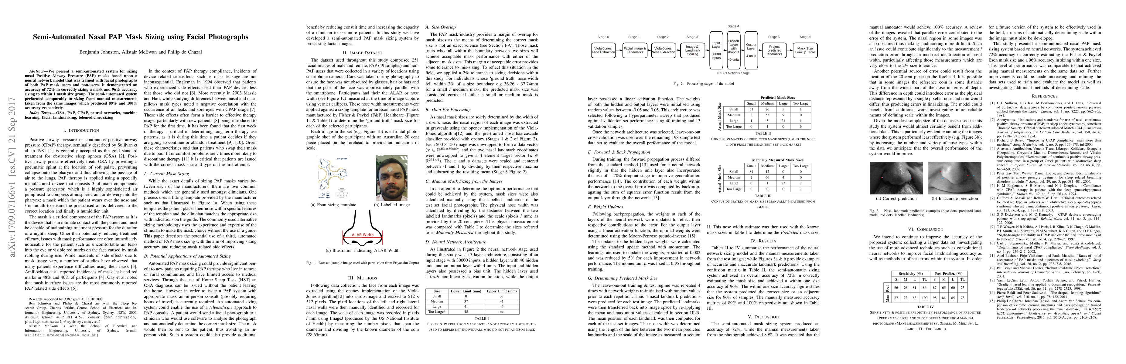 A semi-automated system for sizing nasal PAP masks uses facial photographs with 72% accuracy in correct sizing and 96% within 1 size group, comparable to manual measurements.