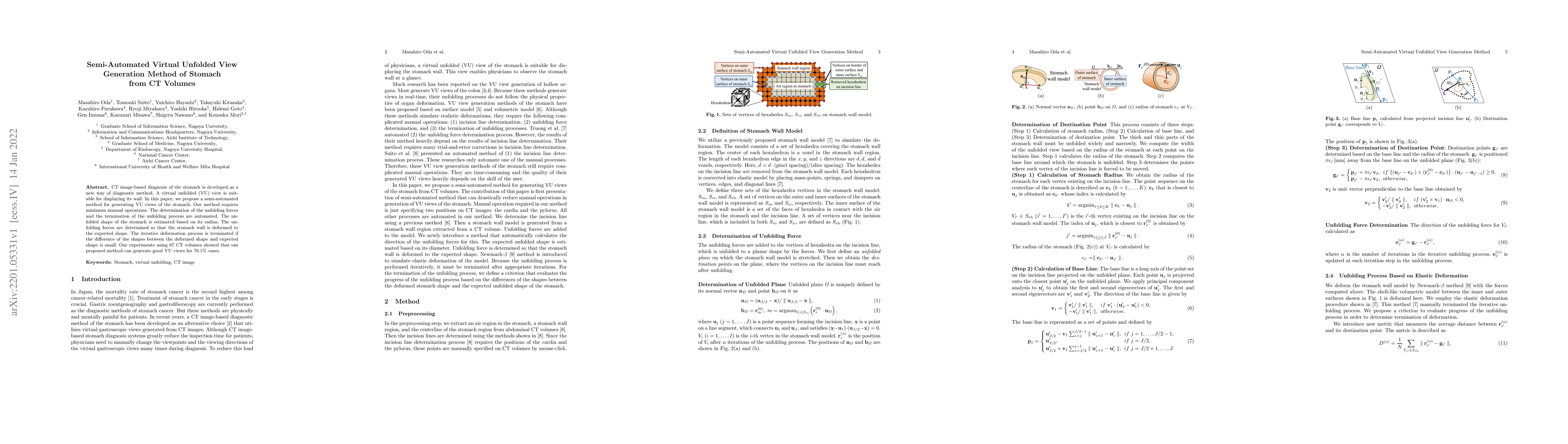 A semi-automated virtual unfolded view (VU) generation method for stomach imaging was presented.