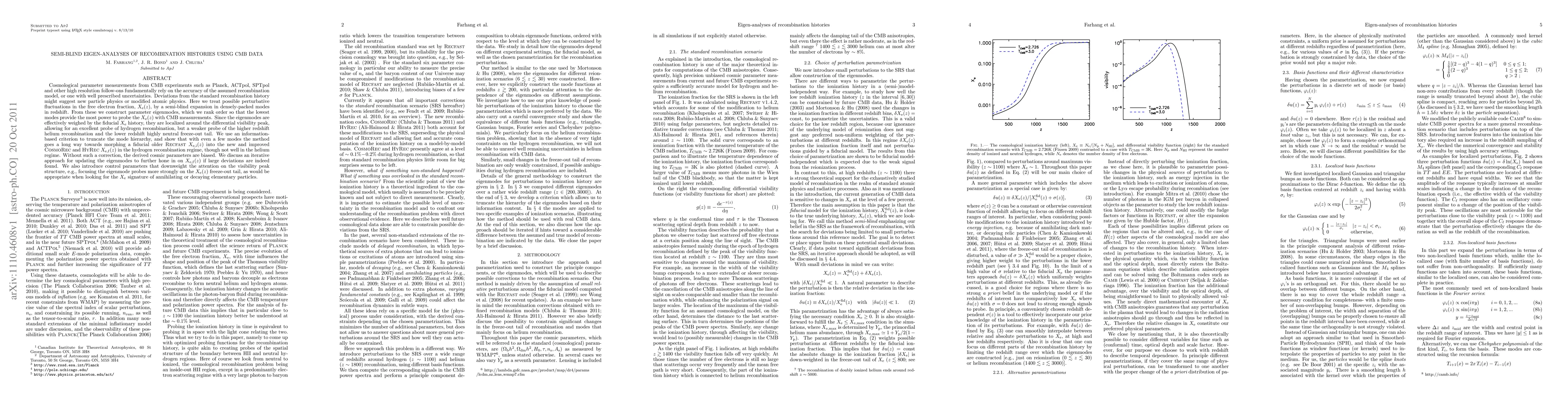 Cosmological parameter measurements from CMB experiments such as Planck, ACTpol, SPTpol and other high resolution follow-ons fundamentally rely on the accuracy of the assumed recombination model, or one with well prescribed uncertainties. Deviations from the standard recombination history might suggest new particle physics or modified atomic physics. Here we treat possible perturbative fluctuations in the free electron fraction, $\Xe(z)$, by a semi-blind expansion in densely-packed modes in redshift. From these we construct parameter eigenmodes, which we rank order so that the lowest modes provide the most power to probe the $\Xe(z)$ with CMB measurements. Since the eigenmodes are effectively weighed by the fiducial $\Xe$ history, they are localized around the differential visibility peak, allowing for an excellent probe of hydrogen recombination, but a weaker probe of the higher redshift helium recombination and the lower redshift highly neutral freeze-out tail. We use an information-based criterion to truncate the mode hierarchy, and show that with even a few modes the method goes a long way towards morphing a fiducial older {\sc Recfast} $X_{\rm e,i} (z)$ into the new and improved {\sc CosmoRec} and {\sc HyRec} $X_{\rm e,f} (z)$ in the hydrogen recombination regime, though not well in the helium regime. Without such a correction, the derived cosmic parameters are biased. We discuss an iterative approach for updating the eigenmodes to further hone in on $X_{\rm e,f} (z)$ if large deviations are indeed found. We also introduce control parameters that downweight the attention on the visibility peak structure, e.g., focusing the eigenmode probes more strongly on the $\Xe (z)$ freeze-out tail, as would be appropriate when looking for the $\Xe$ signature of annihilating or decaying elementary particles.