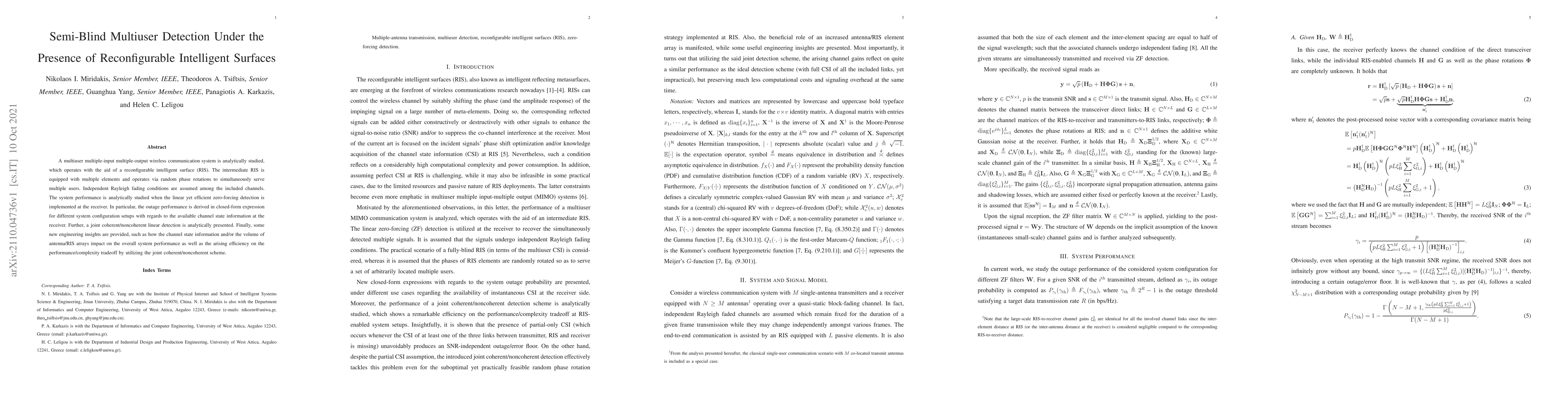 This research analyzes a wireless communication system using a reconfigurable intelligent surface (RIS) to serve multiple users. It derives closed-form expressions for outage performance under zero-forcing detection and introduces a joint coherent/noncoherent linear detection scheme. Key findings include the impact of channel state information and array sizes on system performance, alongside efficiency tradeoffs between performance and complexity.