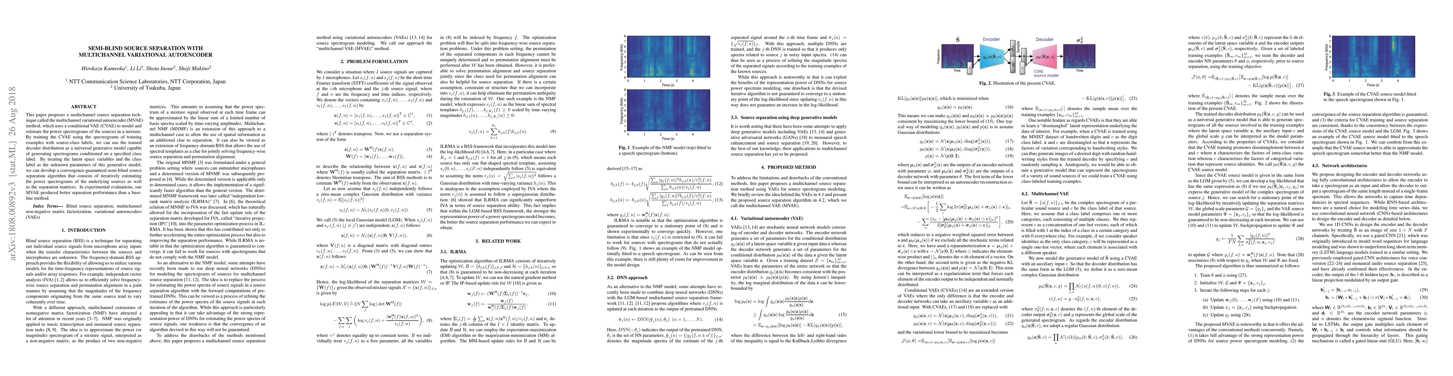This paper introduces the multichannel variational autoencoder (MVAE) method for semi-blind source separation, leveraging a conditional VAE to model source power spectrograms. The proposed method iteratively estimates source spectrograms and separation matrices, achieving superior separation performance compared to a baseline method.