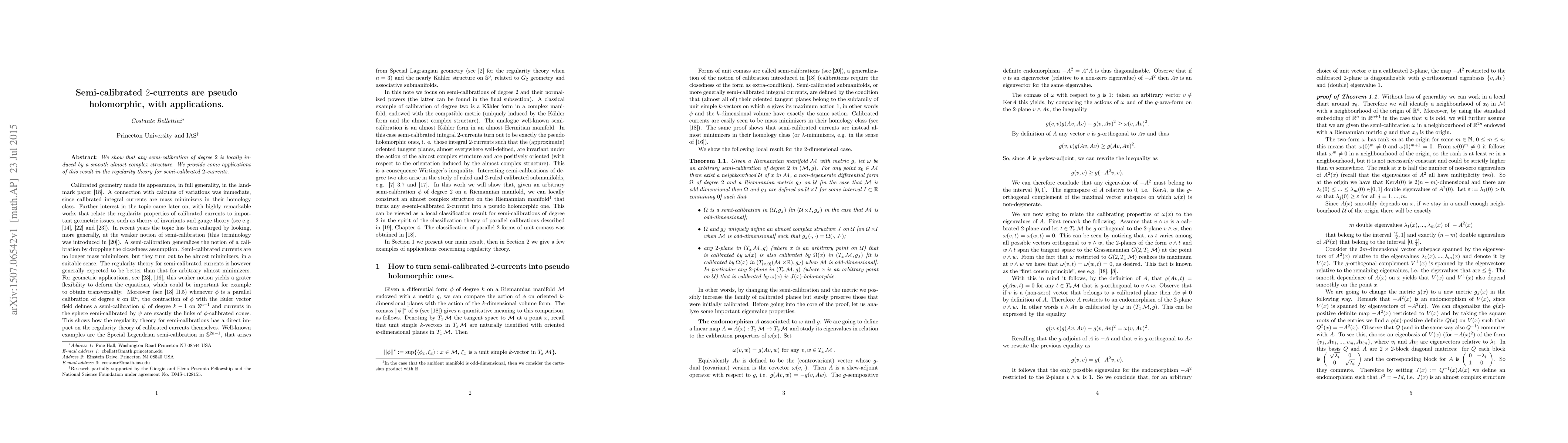 The paper demonstrates that semi-calibrated 2-currents correspond to smooth almost complex structures locally, advancing regularity theory with applications in this mathematical field.