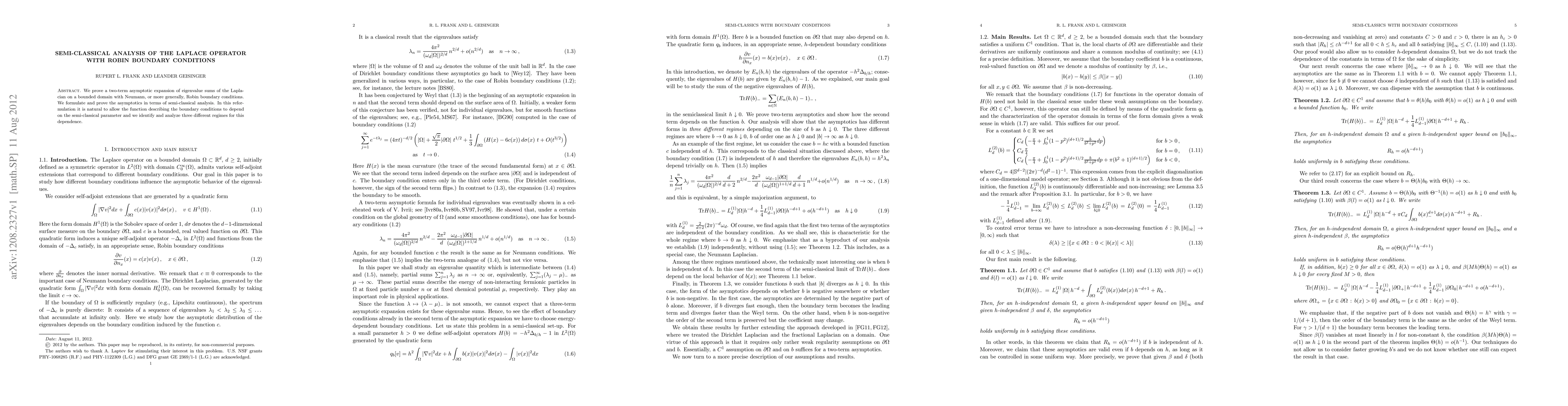 We prove a two-term asymptotic expansion of eigenvalue sums of the Laplacian on a bounded domain with Neumann, or more generally, Robin boundary conditions. We formulate and prove the asymptotics in terms of semi-classical analysis. In this reformulation it is natural to allow the function describing the boundary conditions to depend on the semi-classical parameter and we identify and analyze three different regimes for this dependence.