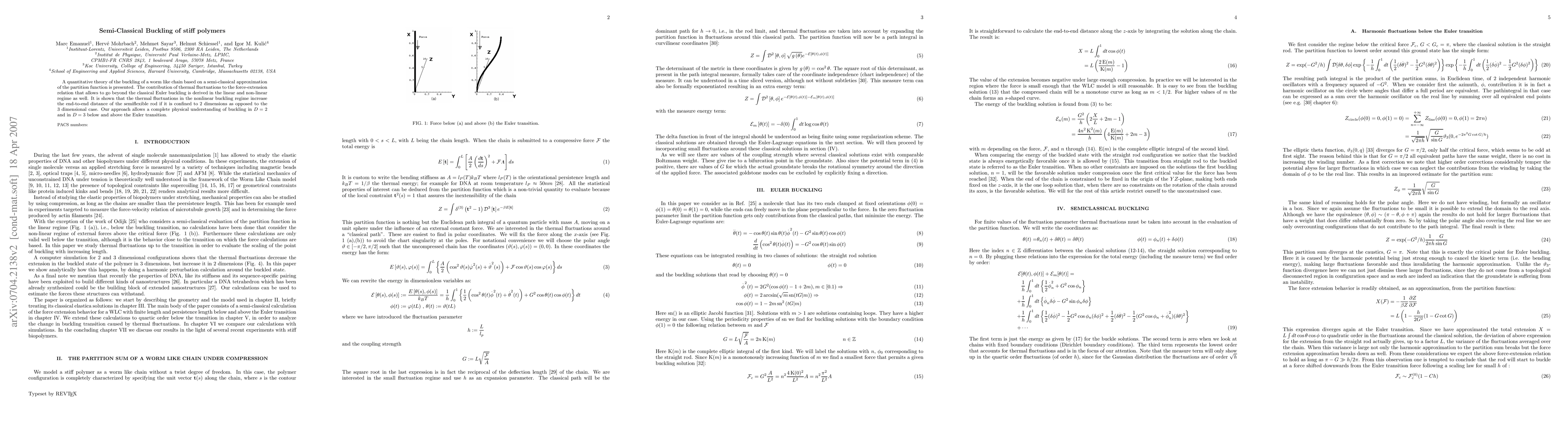 This paper develops a semi-classical theory to describe the buckling behavior of stiff polymers, incorporating thermal fluctuations to extend beyond classical Euler buckling. It reveals that thermal fluctuations increase the end-to-end distance in 2D compared to 3D, providing a comprehensive understanding of buckling in both dimensions.