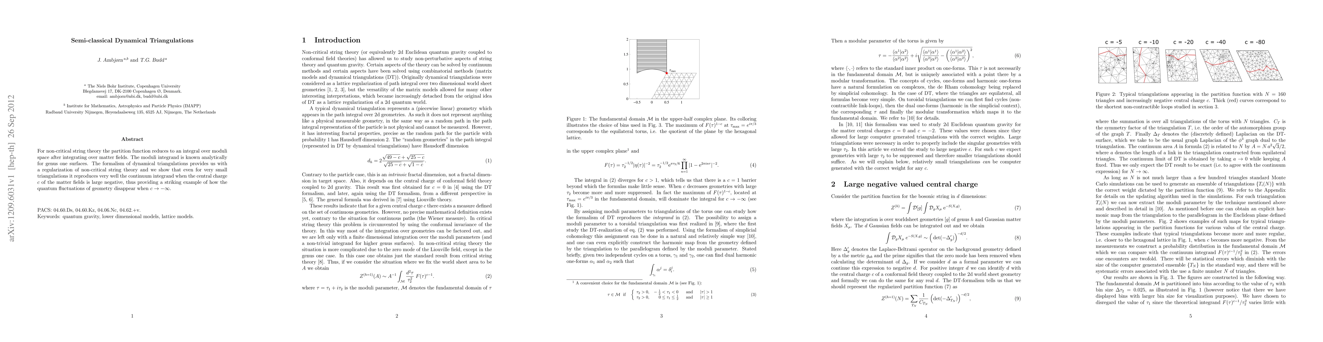 For non-critical string theory the partition function reduces to an integral over moduli space after integrating over matter fields. The moduli integrand is known analytically for genus one surfaces. The formalism of dynamical triangulations provides us with a regularization of non-critical string theory and we show that even for very small triangulations it reproduces very well the continuum integrand when the central charge $c$ of the matter fields is large negative, thus providing a striking example of how the quantum fluctuations of geometry disappear when $c \to -\infty$.