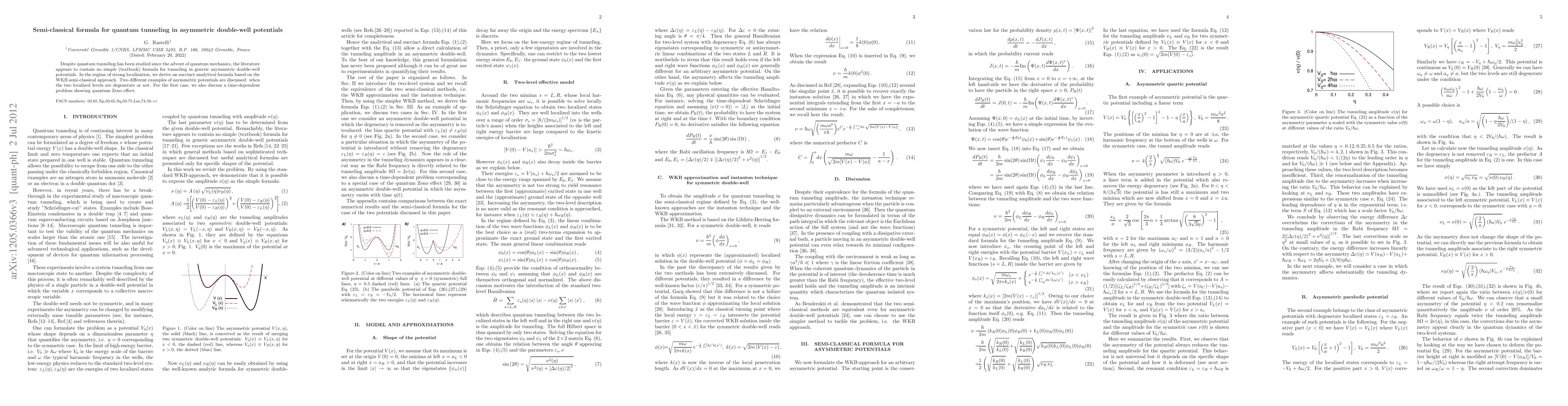 Despite quantum tunneling has been studied since the advent of quantum mechanics, the literature appears to contain no simple (textbook) formula for tunneling in generic asymmetric double-well potentials. In the regime of strong localization, we derive an succinct analytical formula based on the WKB semi-classical approach. Two different examples of asymmetric potentials are discussed: when the two localized levels are degenerate or not. For the first case, we also discuss a time-dependent problem showing quantum Zeno effect.
