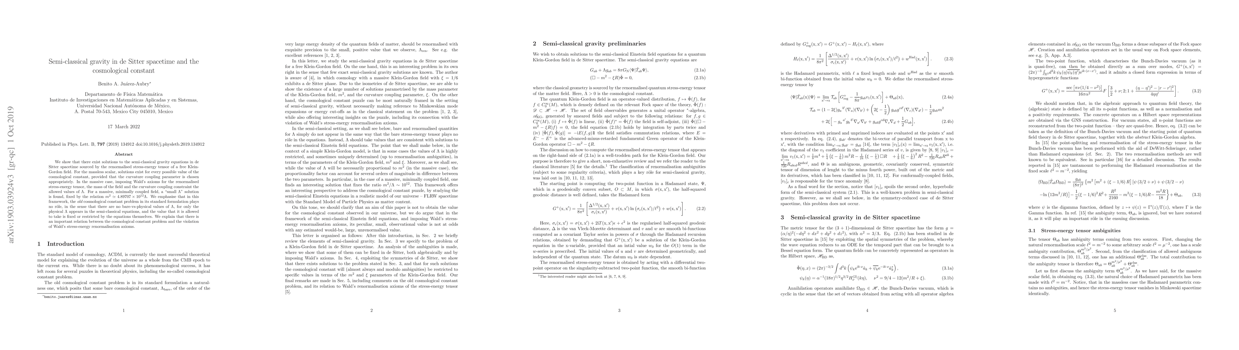 We show that there exist solutions to the semi-classical gravity equations in de Sitter spacetime sourced by the renormalised stress-energy tensor of a free Klein-Gordon field. For the massless scalar, solutions exist for every possible value of the cosmological constant, provided that the curvature coupling parameter is chosen appropriately. In the massive case, imposing Wald's axioms for the renormalised stress-energy tensor, the mass of the field and the curvature coupling constraint the allowed values of $\Lambda$. For a massive, minimally coupled field, a "small $\Lambda$" solution is found, fixed by the relation $m^2 \simeq 4.89707 \times 10^{12} \Lambda$. We emphasise that in this framework, the {\it old} cosmological constant problem in its standard formulation plays no r\^ole, in the sense that there are no bare-vs-physical values of $\Lambda$, for only the physical $\Lambda$ appears in the semi-classical equations, and the value that it is allowed to take is fixed or restricted by the equations themselves. We explain that there is an important relation between the cosmological constant problem and the violation of Wald's stress-energy renormalisation axioms.