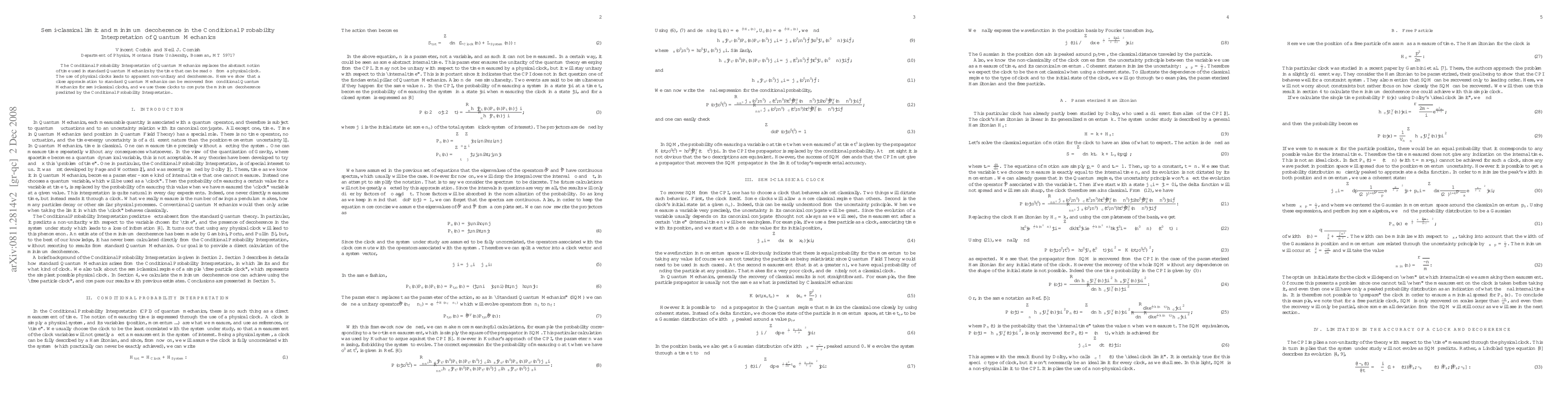 This paper explores the Conditional Probability Interpretation of Quantum Mechanics, demonstrating that semi-classical clocks can approximate standard Quantum Mechanics while computing the minimum decoherence predicted by this interpretation.