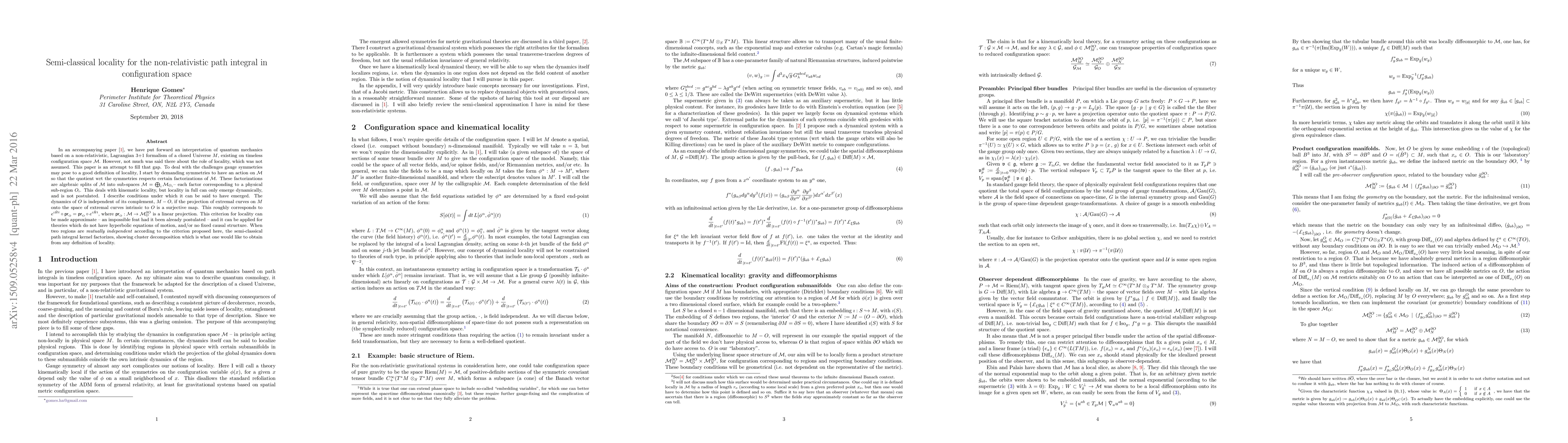This paper proposes a non-relativistic path integral framework that incorporates semi-classical locality in configuration space, allowing for a better understanding of quantum mechanics without assuming locality a priori.
