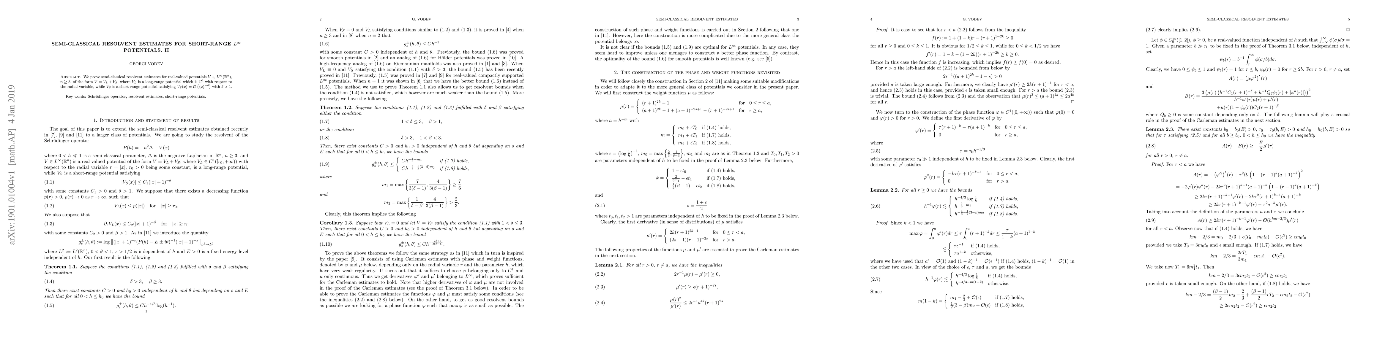 We prove semi-classical resolvent estimates for real-valued potentials V $\in$ L $\infty$ (R n), n $\ge$ 3, of the form V = VL + VS, where VL is a long-range potential which is C 1 with respect to the radial variable, while VS is a short-range potential satisfying VS(x) = O x --$\delta$ with $\delta$ > 1.