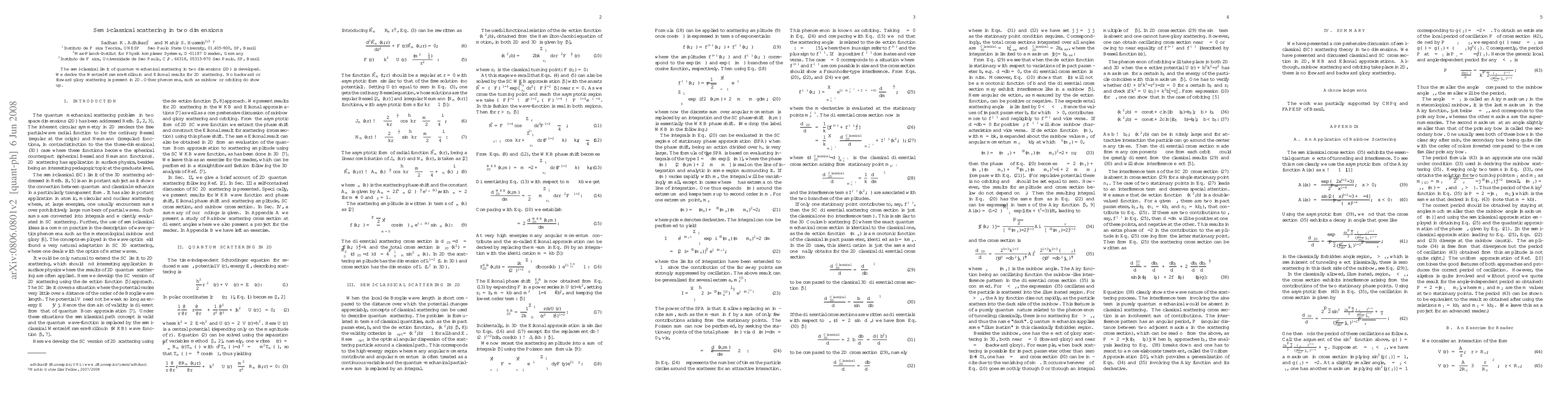 The semi-classical limit of quantum-mechanical scattering in two dimensions (2D) is developed. We derive the Wentzel-Kramers-Brillouin and Eikonal results for 2D scattering. No backward or forward glory scattering is present in 2D. Other phenomena, such as rainbow or orbiting do show up.