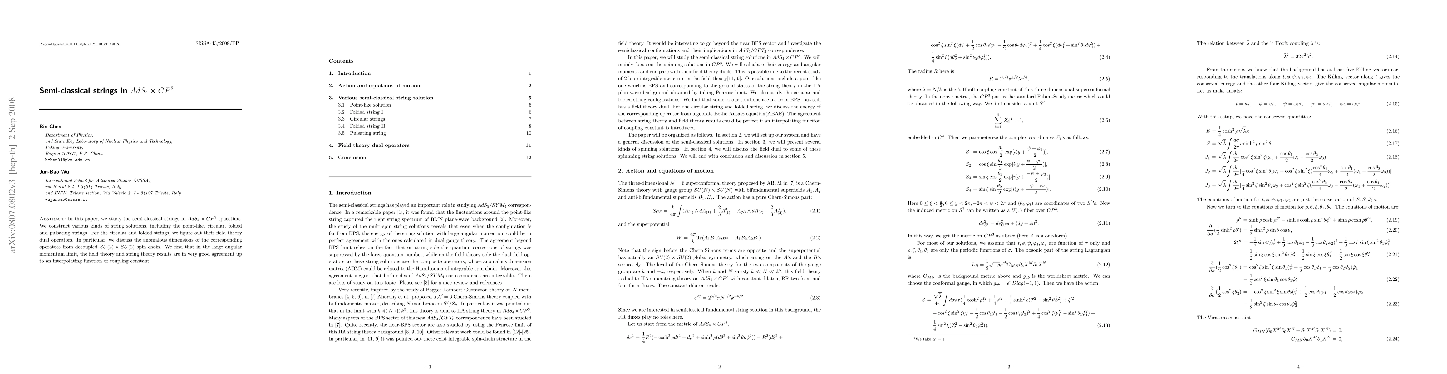 This paper studies semi-classical strings in AdS_4*CP^3 spacetime, constructing various string solutions and finding good agreement between field theory and string theory results in the large angular momentum limit.