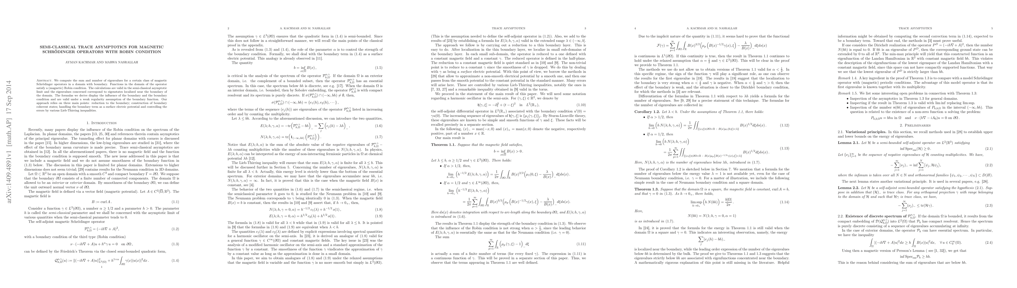 This paper computes the semi-classical trace asymptotics for magnetic Schrödinger operators with Robin boundary conditions, deriving formulas that reflect the influence of the boundary and the boundary condition. The approach involves reducing the problem to the boundary, constructing boundary coherent states, and controlling errors using Lieb-Thirring inequalities.