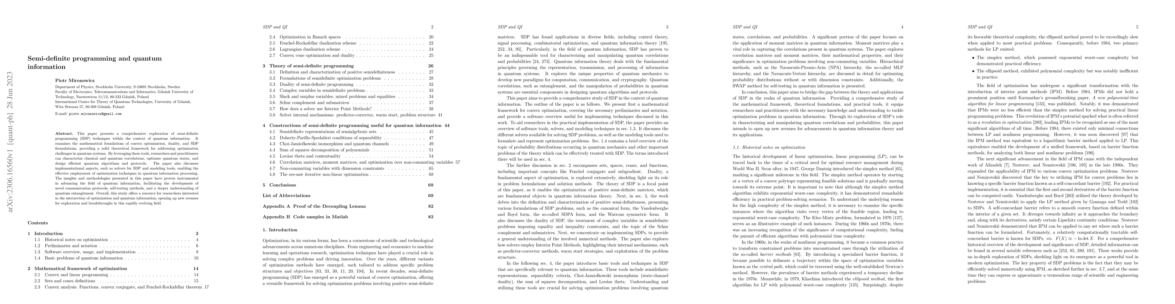 This paper explores semi-definite programming (SDP) techniques for optimizing quantum information systems, detailing the mathematical foundations of convex optimization and their application in characterizing quantum correlations and designing quantum algorithms. It also discusses practical implementation aspects, offering valuable insights for advancing quantum information research.