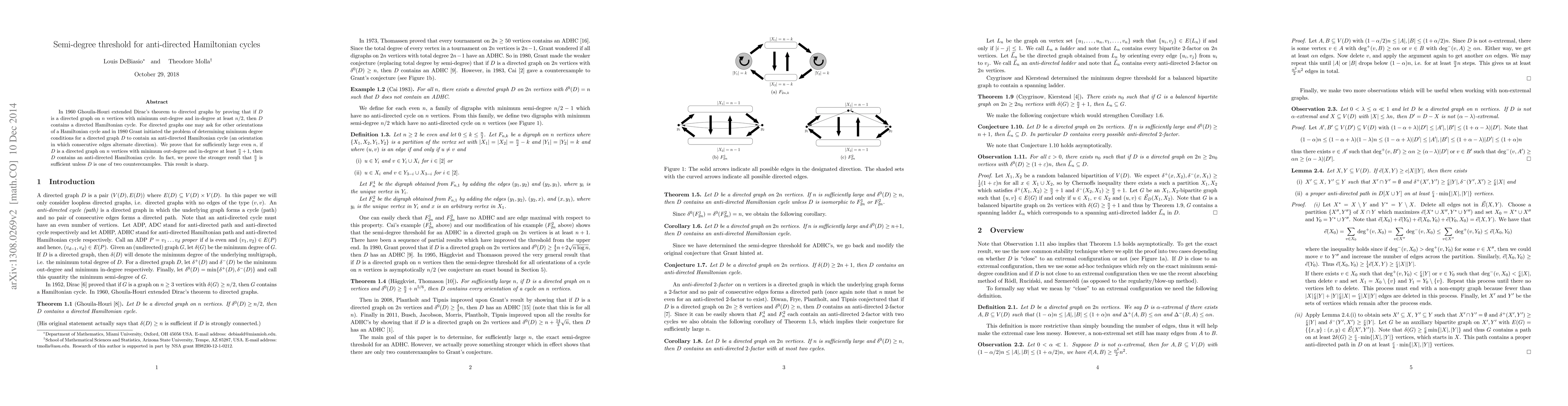 Researchers prove that for sufficiently large even graphs, a minimum semi-degree threshold of n/2+1 ensures the presence of an anti-directed Hamiltonian cycle, building on earlier work by Ghouila-Houri and Grant.