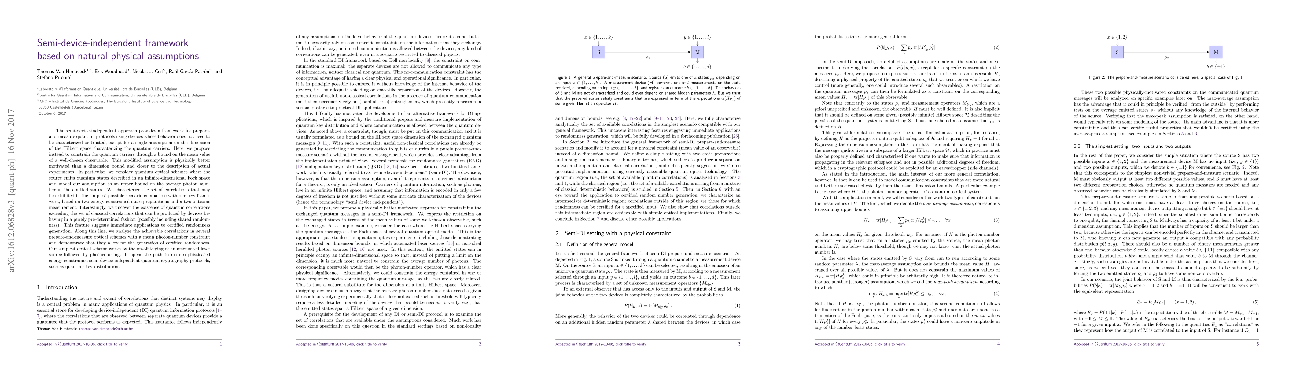 This paper proposes a semi-device-independent quantum framework based on a natural physical assumption: an upper bound on the average photon number in quantum optical states. It demonstrates that this approach can generate quantum correlations exceeding classical limits, enabling certified randomness generation and paving the way for advanced quantum cryptography protocols.