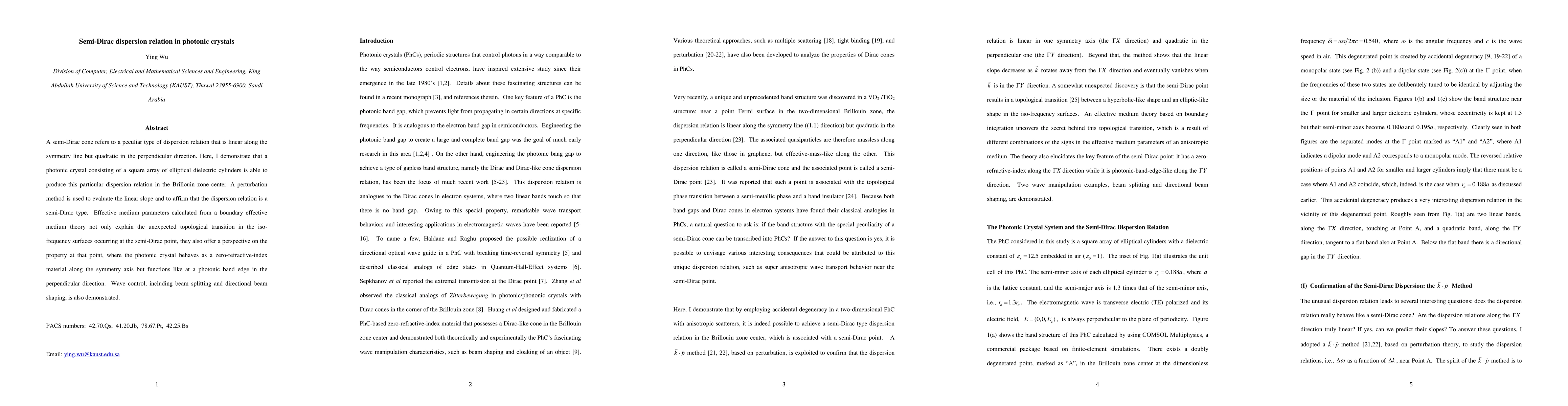 This paper demonstrates that a photonic crystal made of elliptical dielectric cylinders can exhibit a semi-Dirac dispersion relation, characterized by linear behavior along a symmetry line and quadratic behavior perpendicularly. Effective medium parameters elucidate the topological transition and unique properties at the semi-Dirac point, where the material behaves like zero-refractive-index along the symmetry axis and like a photonic band edge in the perpendicular direction.