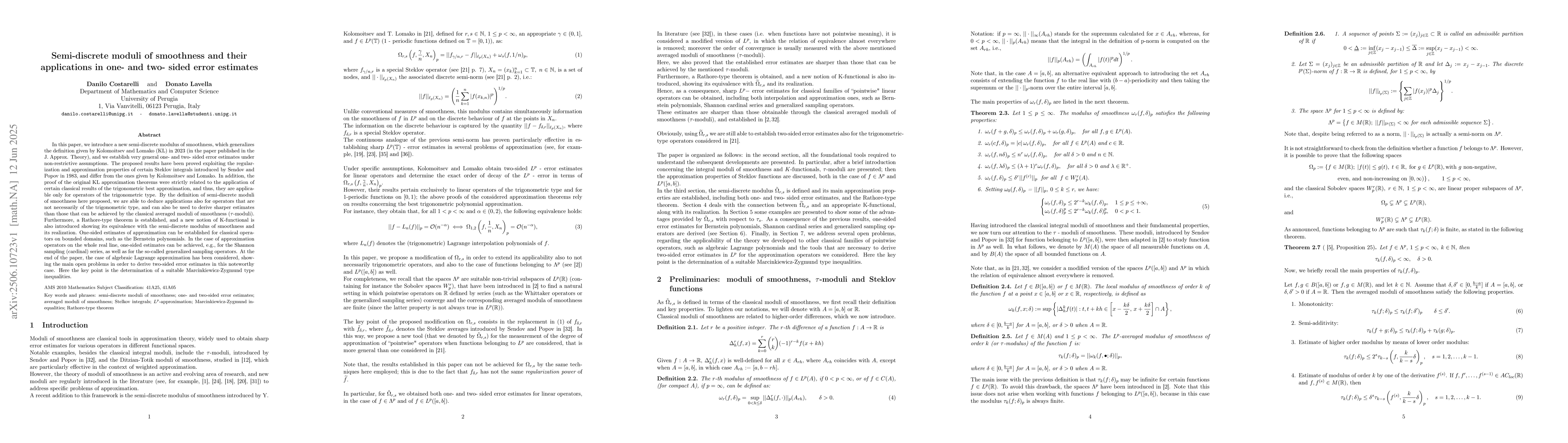 Researchers introduce a new semi-discrete modulus of smoothness, establishing general one- and two-sided error estimates for various operators, including those not of trigonometric type, with implications for approximation theory and potential applications in classical operators on bounded domains.