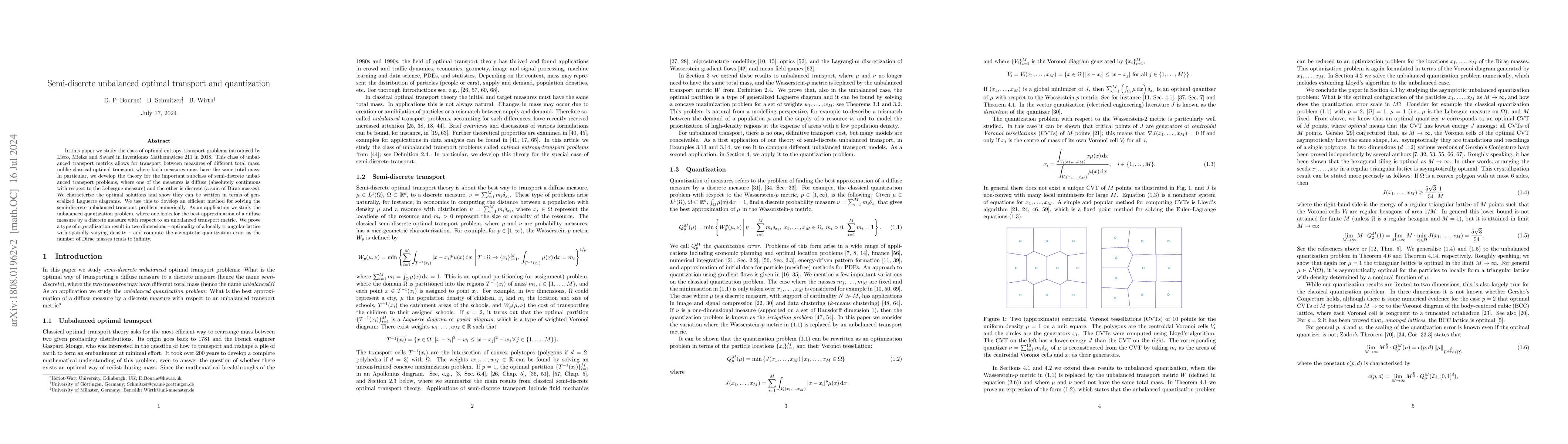 This paper develops the theory for semi-discrete unbalanced optimal transport, allowing for transport between measures of different total mass, and characterizes optimal solutions using generalized Laguerre diagrams. It proposes an efficient numerical method and applies it to the unbalanced quantization problem, proving optimality of the triangular lattice in 2D and computing the asymptotic quantization error.