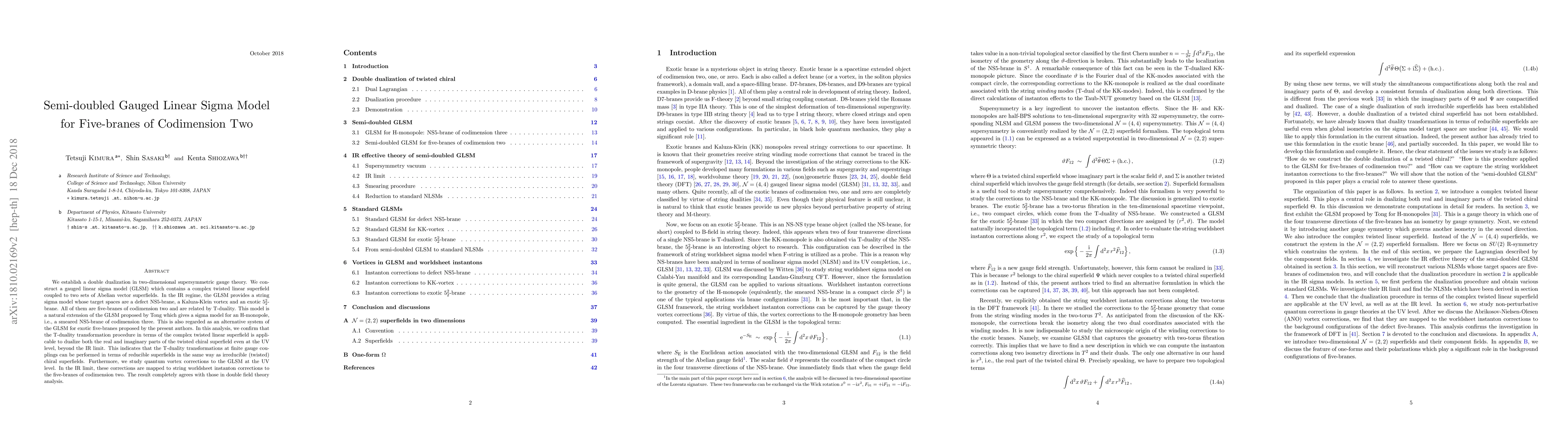 This paper constructs a gauged linear sigma model with a complex twisted linear superfield and two sets of Abelian vector superfields, establishing a double dualization in two-dimensional supersymmetric gauge theory. The IR regime of the model describes five-branes of codimension two, including defect NS5-branes and exotic $5^2_2$-branes, related by T-duality, and confirms the applicability of T-duality transformations at finite gauge couplings.