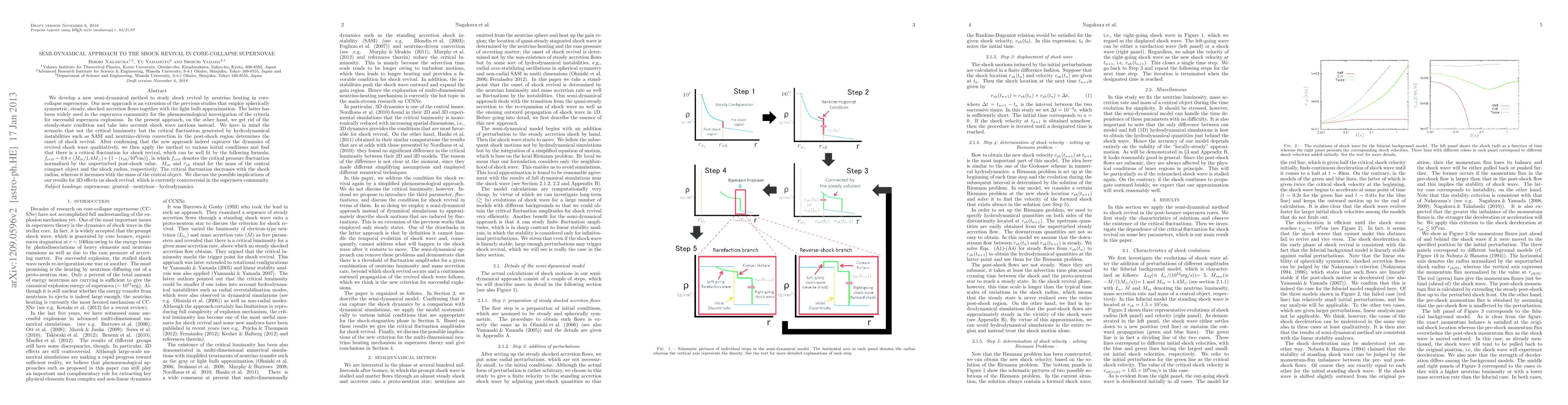 This paper introduces a semi-dynamical method to study shock revival in core-collapse supernovae, moving beyond steady-state approximations to consider shock wave motions and hydrodynamical instabilities. The findings suggest a critical fluctuation, dependent on the mass of the central compact object and shock radius, determines shock revival, with implications for three-dimensional effects in supernova dynamics.