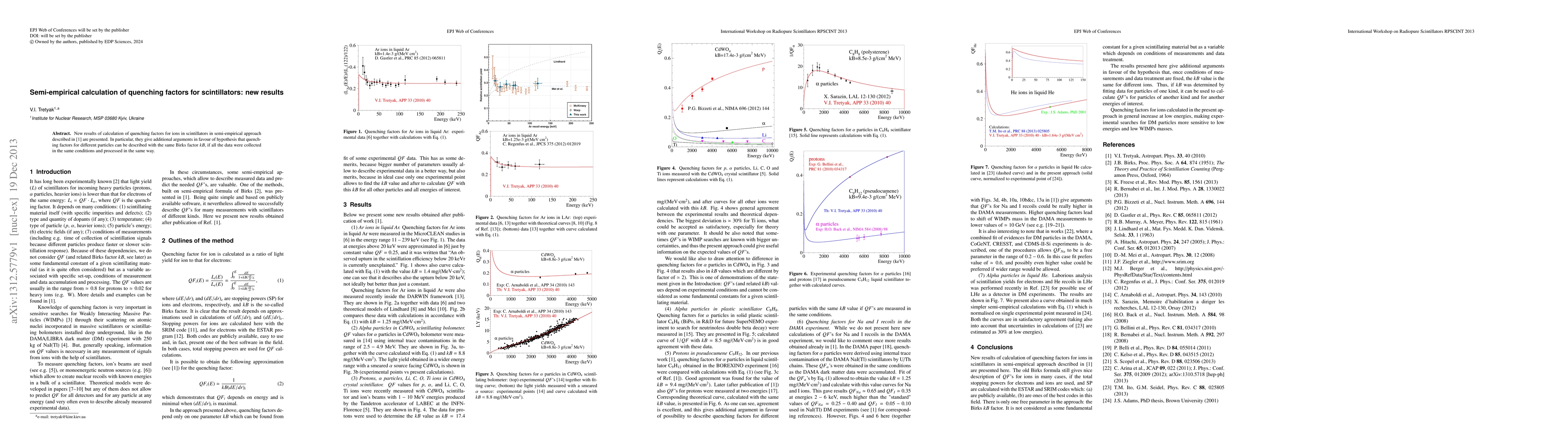 New results of calculation of quenching factors for ions in scintillators in semi-empirical approach described in [V.I. Tretyak, Astropart. Phys. 33 (2010) 40] are presented. In particular, they give additional arguments in favour of hypothesis that quenching factors for different particles can be described with the same Birks factor kB, if all the data were collected in the same conditions and processed in the same way.