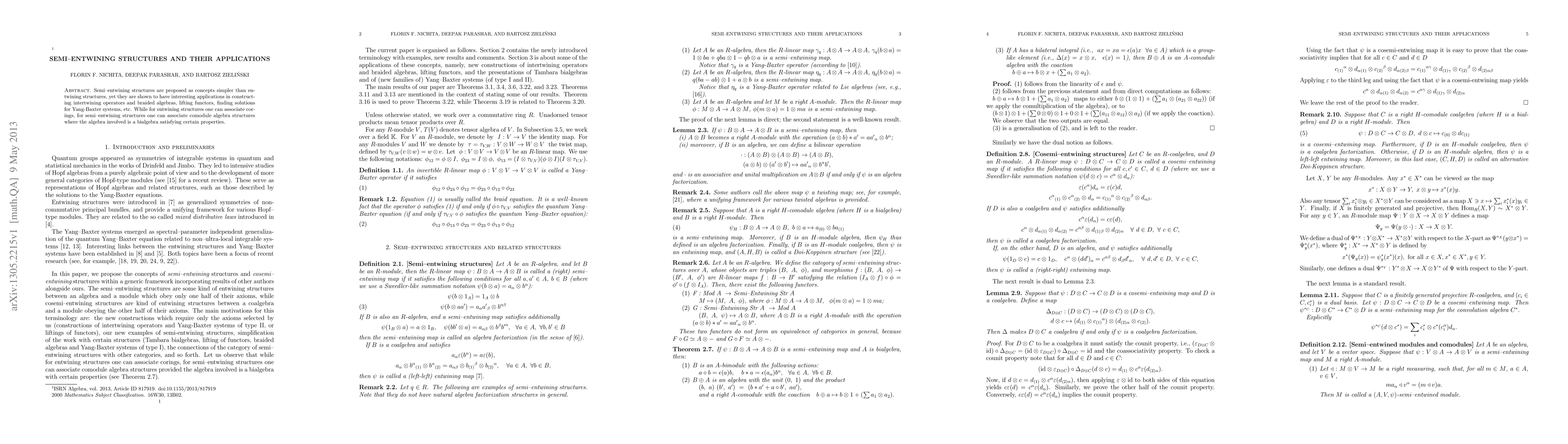 Summary: Semi-entwining structures, simpler than entwining structures, enable the construction of intertwining operators, braided algebras, and solutions for Yang-Baxter systems, associating comodule algebra structures to bialgebras. They extend applications seen in corings associated with entwining structures.