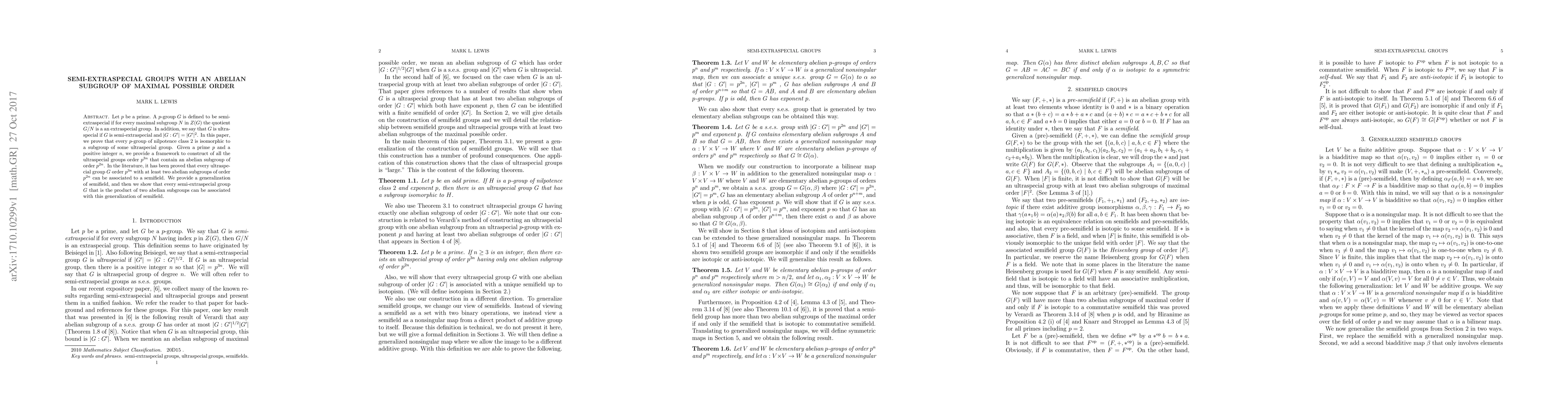 This paper explores semi-extraspecial $p$-groups, proving that every $p$-group of nilpotence class $2$ is isomorphic to a subgroup of an ultraspecial group. It constructs all ultraspecial groups of order $p^{3n}$ containing an abelian subgroup of order $p^{2n}$ and generalizes semifields to associate these groups with a new structure.