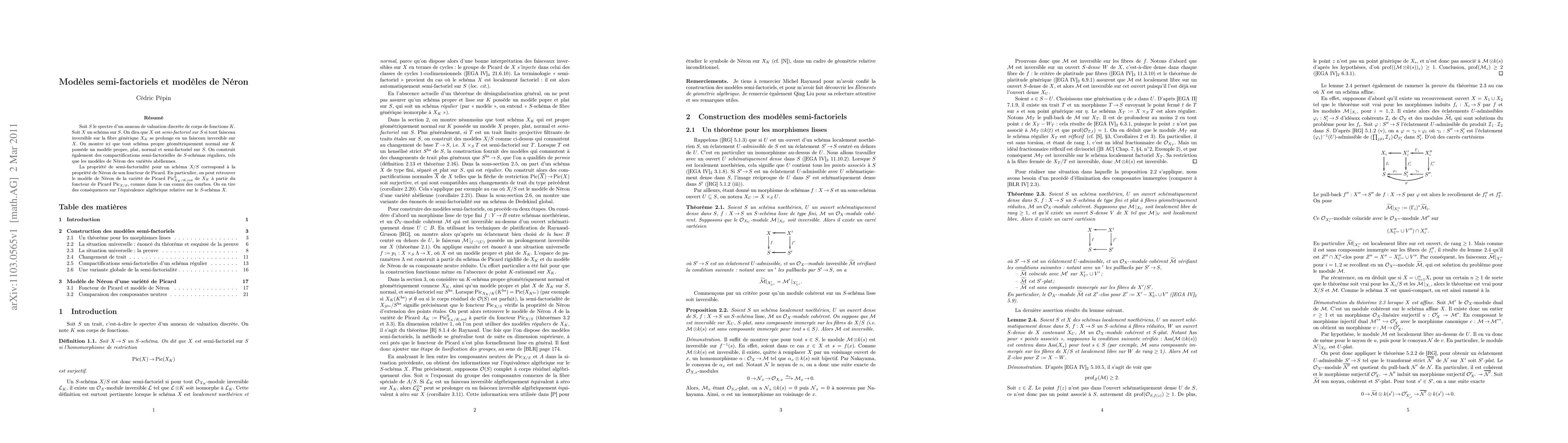 This paper explores the existence of semi-factorial models for proper geometrically normal schemes over a discrete valuation ring, demonstrating that such schemes admit proper, flat, normal, and semi-factorial models over the ring. It also constructs semi-factorial compactifications, including N\'eron models of abelian varieties, linking semi-factoriality to the N\'eron property of the Picard functor.