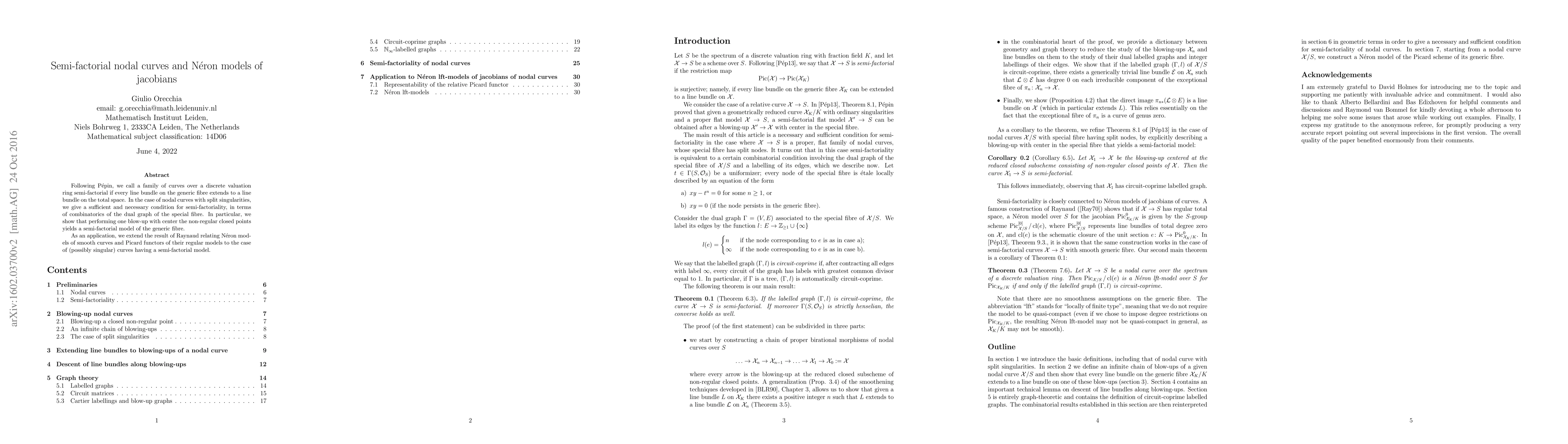 This paper explores semi-factorial nodal curves over discrete valuation rings, providing a condition for semi-factoriality based on the combinatorics of the dual graph of the special fibre. The authors demonstrate that a single blow-up at non-regular points yields a semi-factorial model, and extend Raynaud's construction to singular generic fibres for the N\'eron model of the Jacobian.