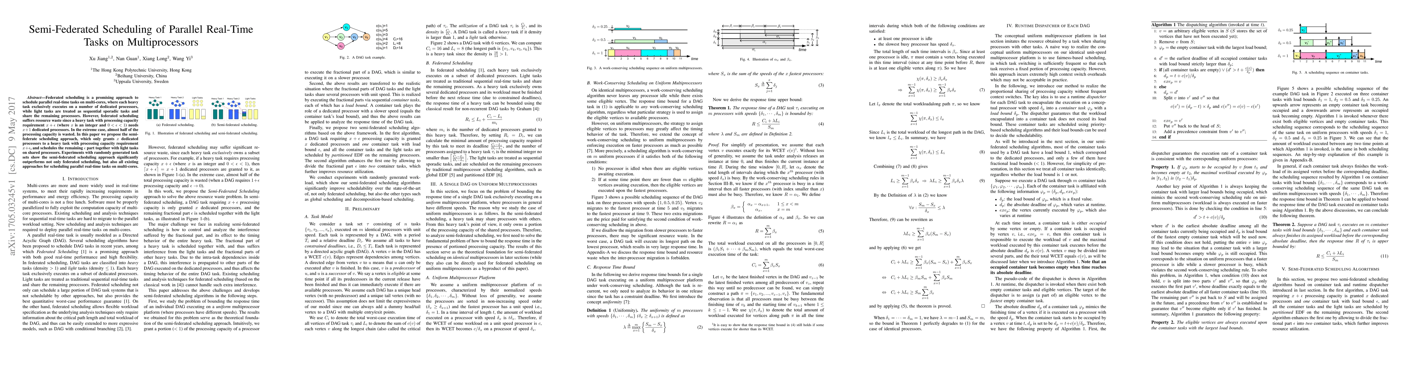 This paper proposes semi-federated scheduling to optimize resource usage for parallel real-time tasks on multiprocessors by allocating only necessary dedicated processors to heavy tasks, reducing waste compared to traditional federated scheduling. Experimental results demonstrate that this approach outperforms both federated scheduling and other existing methods.