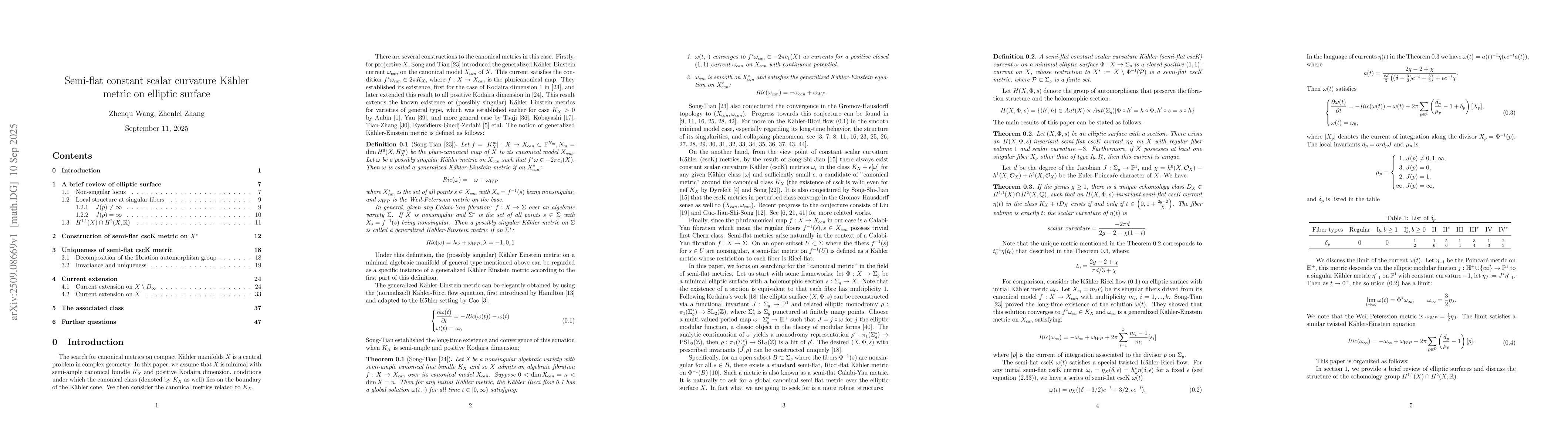 We introduce and construct a novel type of canonical metric: the semi-flat constant scalar curvature K\"ahler (semi-flat cscK) current, which naturally arises in Calabi-Yau fibrations. For a given elliptic surface $X$ with a holomorphic section, We explicitly construct the desired semi-flat cscK current and analyze its behavior along singular parts. We establish its uniqueness under the condition that $X$ possesses at least one singular fiber other than of type $I_b$ or $I_b^*$. These results contribute to a geometric uniformization program for elliptic surfaces.