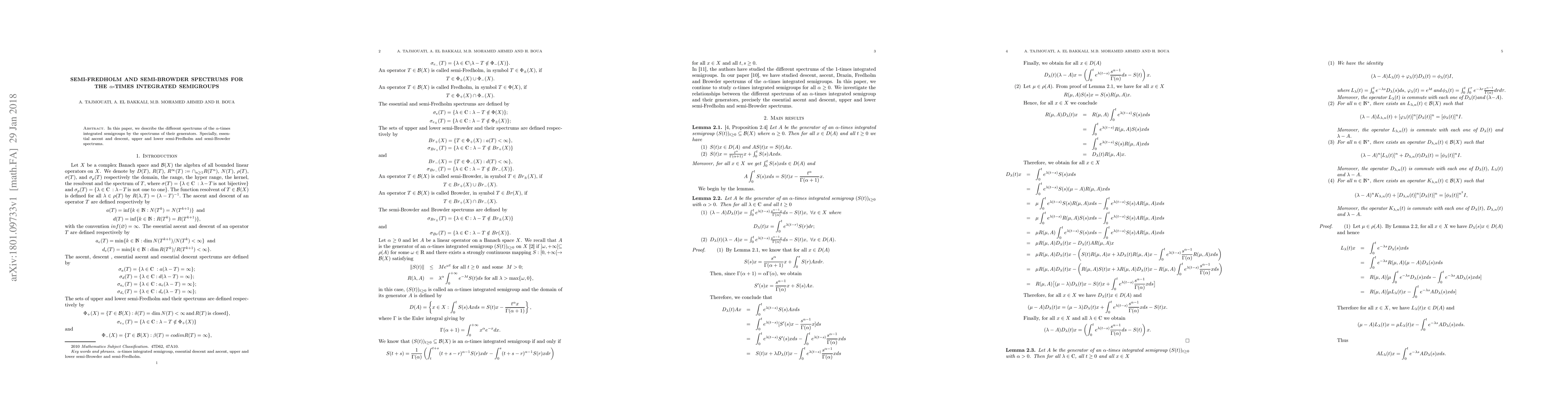 The paper presents detailed analysis and proofs for the relationships between the spectrums of ${\alpha}$-times integrated semigroups and their generators, including essential ascent and descent, semi-Fredholm, and semi-Browder spectrums.